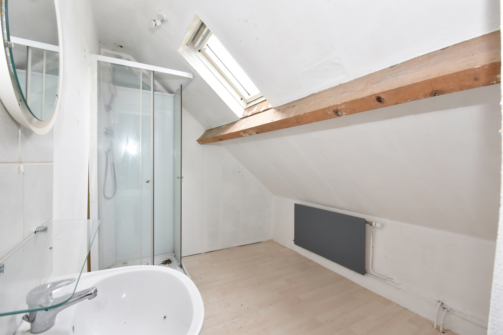 - À l'étage : palier/couloir, deux grandes chambres, salle d'eau.