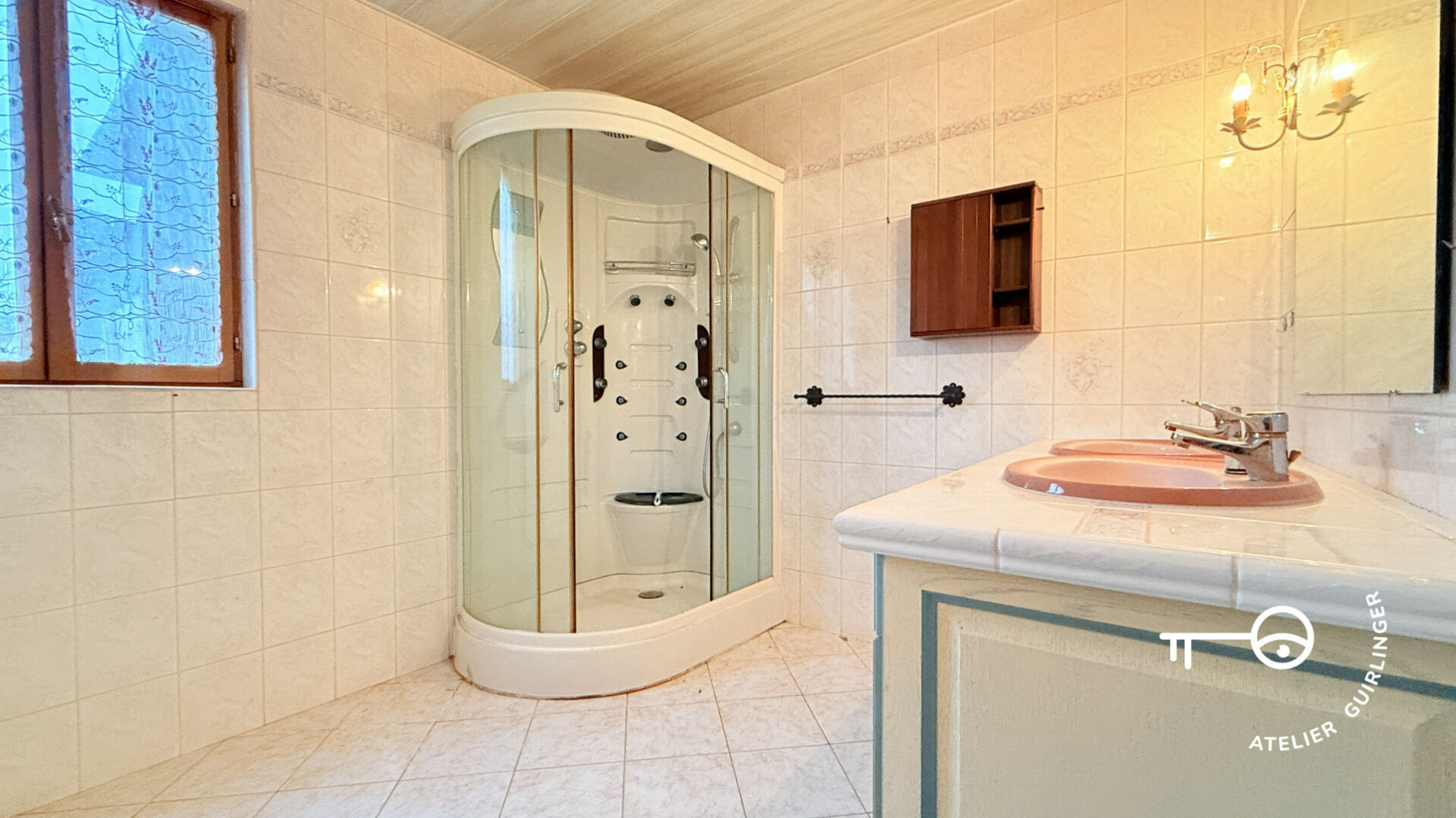 A l'étage, vous pourrez aménager à votre goût les trois chambres, la salle de bains avec W.C. et le grenier, qui offrent de nombreuses possibilités.