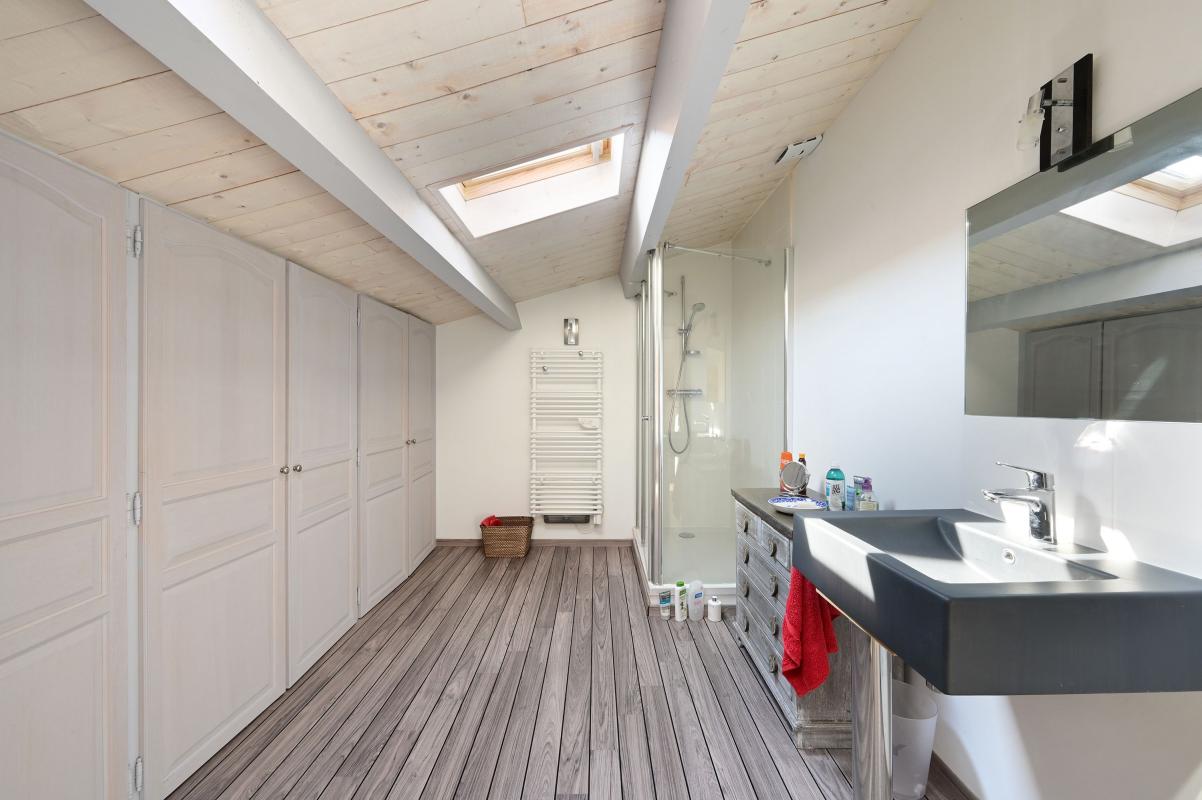 A l'étage, 2 belles chambres avec dressing, une suite parentale et une salle de bains avec WC.