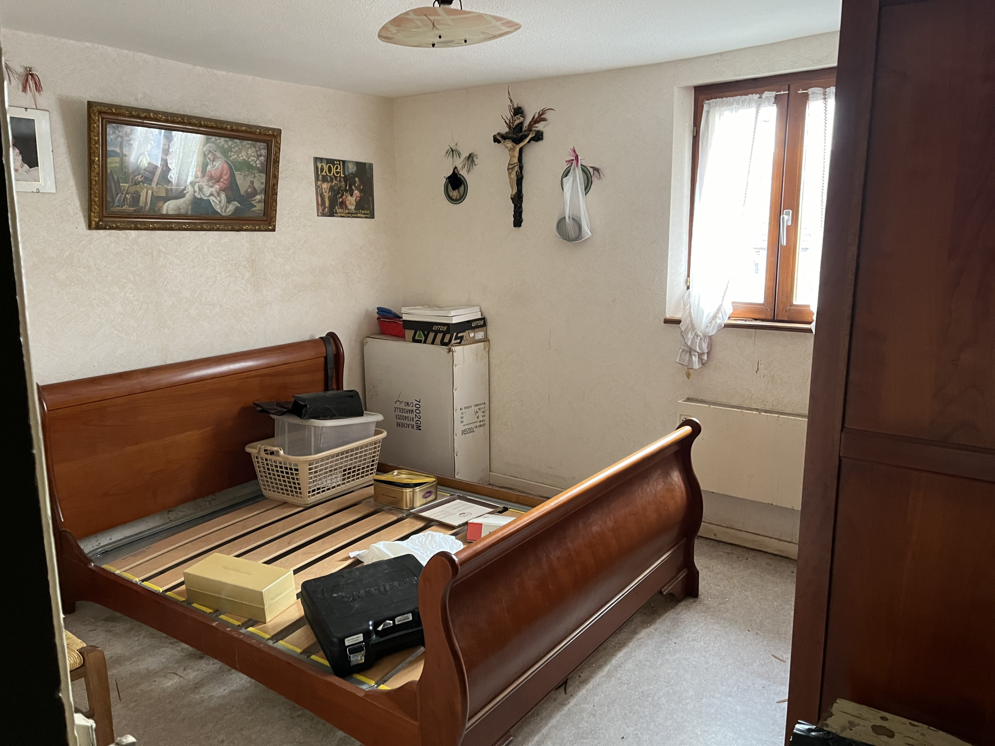 La partie habitation est au-dessus d'une grande cave et forme un logement sur deux niveaux avec une entrée-dégagement, une cuisine, un séjour, une salle d'eau, un WC, quatre chambres et grands combles aménageables par dessus.