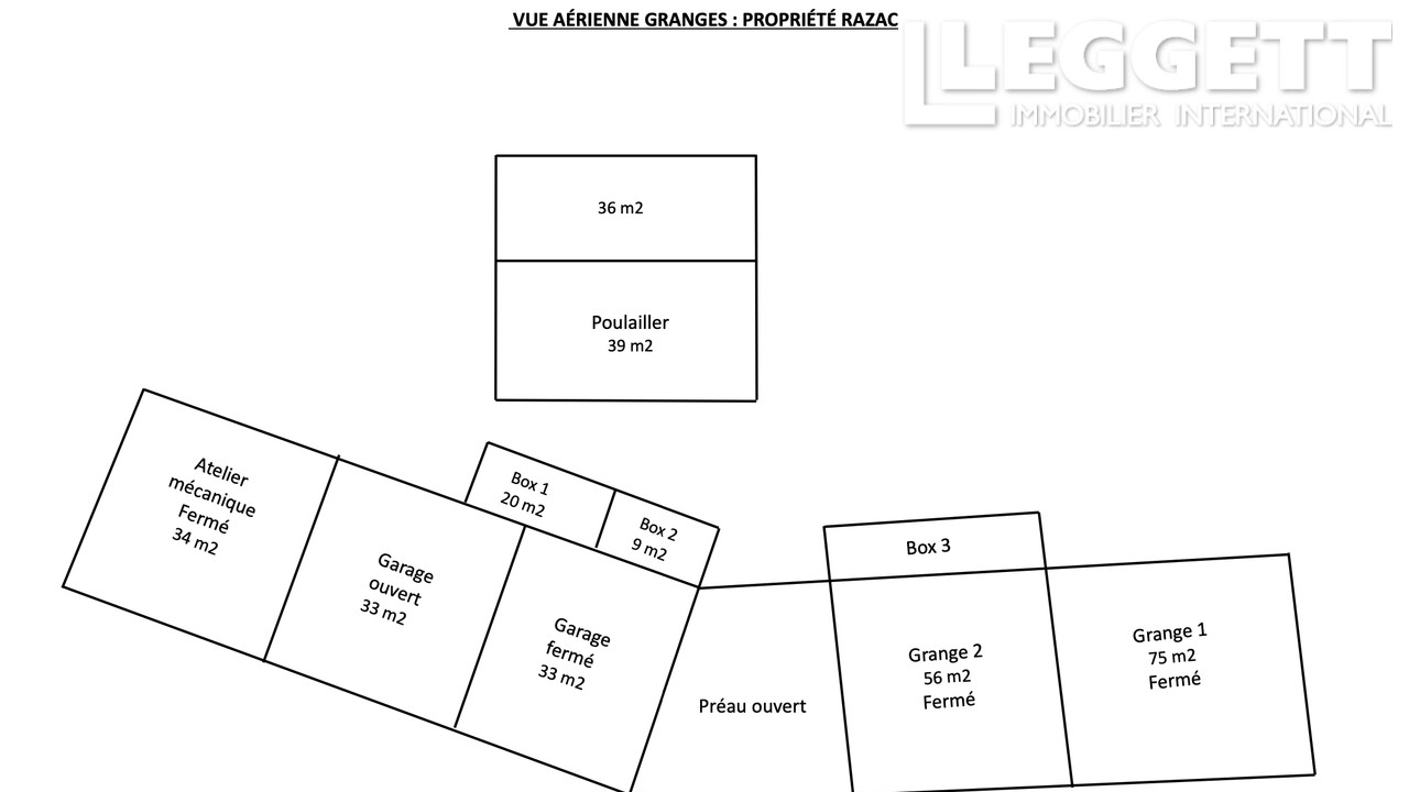 - 1 grange ouverte de 33 m²