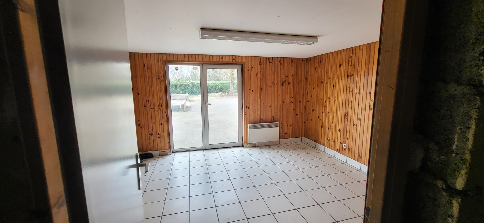 En plain-pied, 2 bureaux, salle de réunion ouverte sur cuisine américaine, sanitaires.