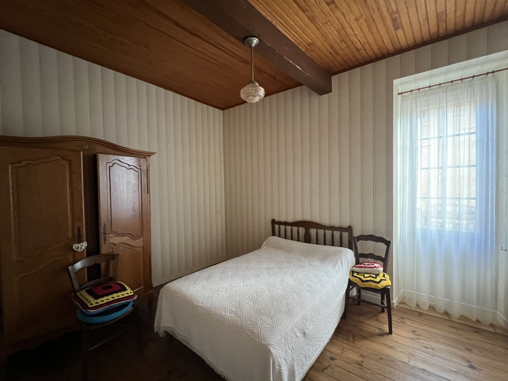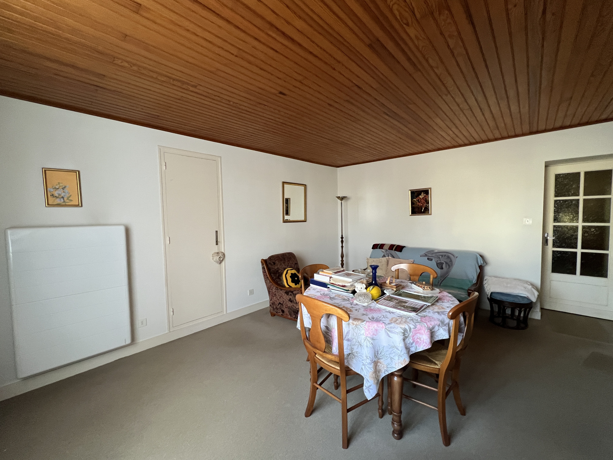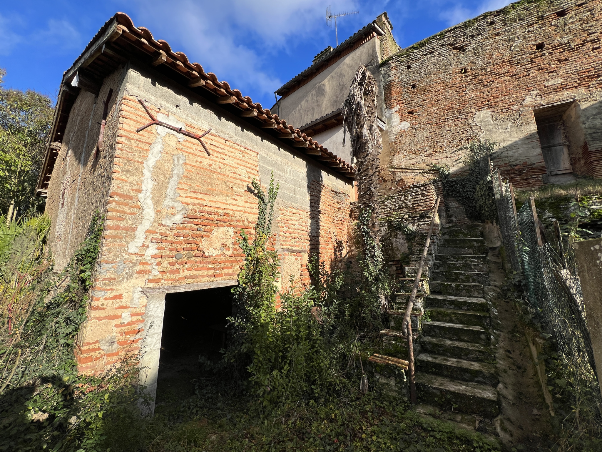 Possibilité de garer une voiture. Jardin en contrebas.