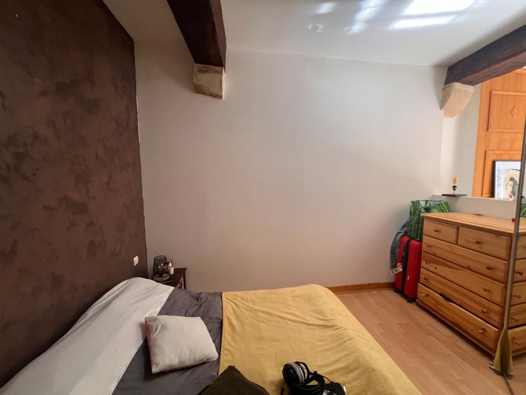 Pièce de vie avec de beaux parquets et un coin cuisine, un espace chambre avec placards, une salle d'eau, wc.