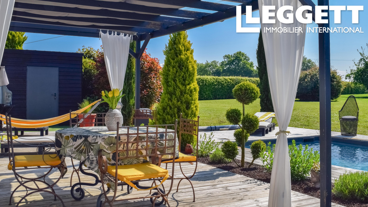 A27964CBC18 - La propriété est située dans le département du Cher et est entourée de jardins magnifiquement entretenus de 21.515m2 son propre petit lac et sa piscine. Elle comprend deux longères typiques de la région, rénovées avec goût, avec une surface habitable d'environ 400m2, une grande grange convertie, abritant actuellement un SPA entièrement équipé, une salle de thérapie et un double garage avec stockage.