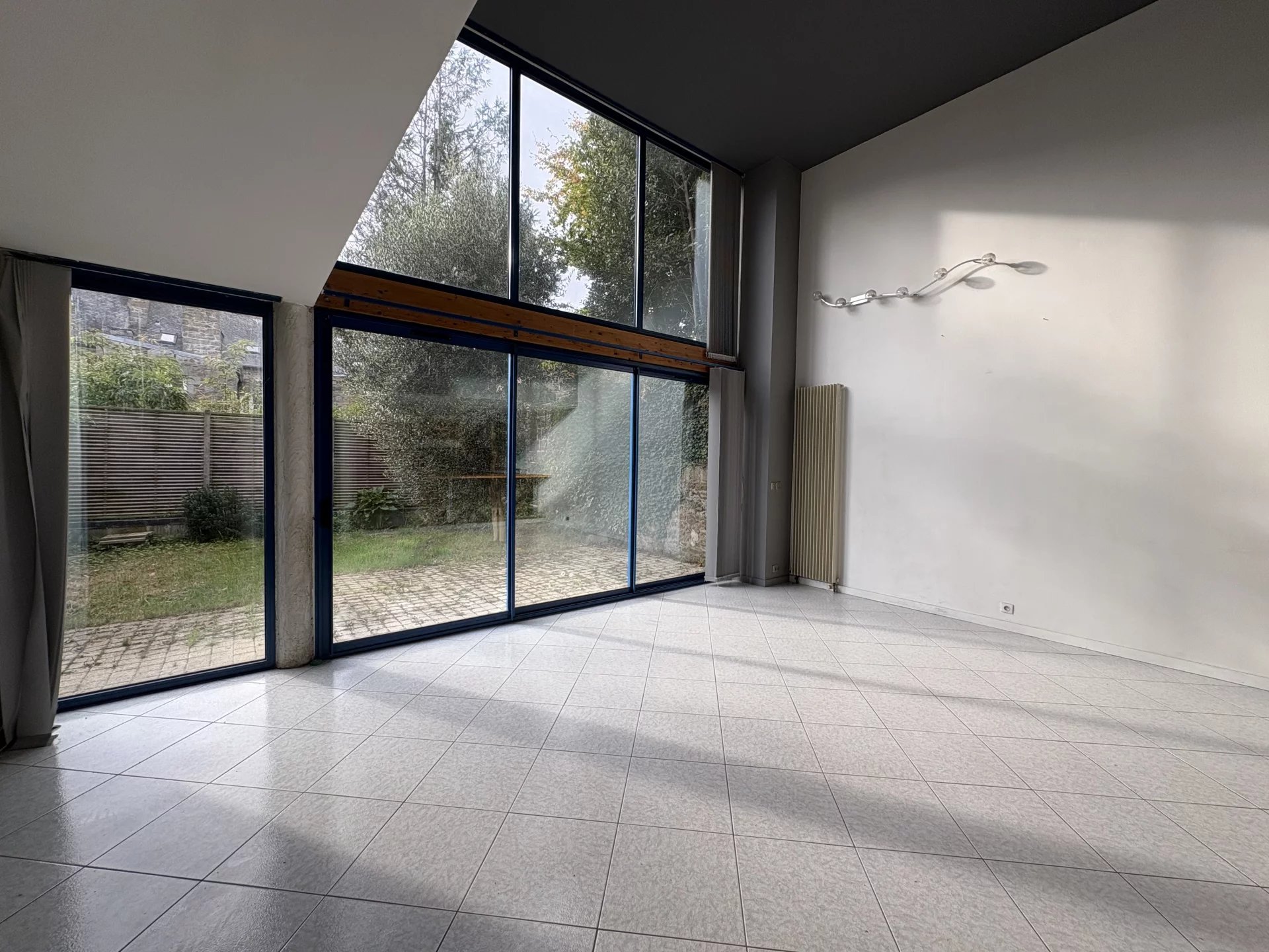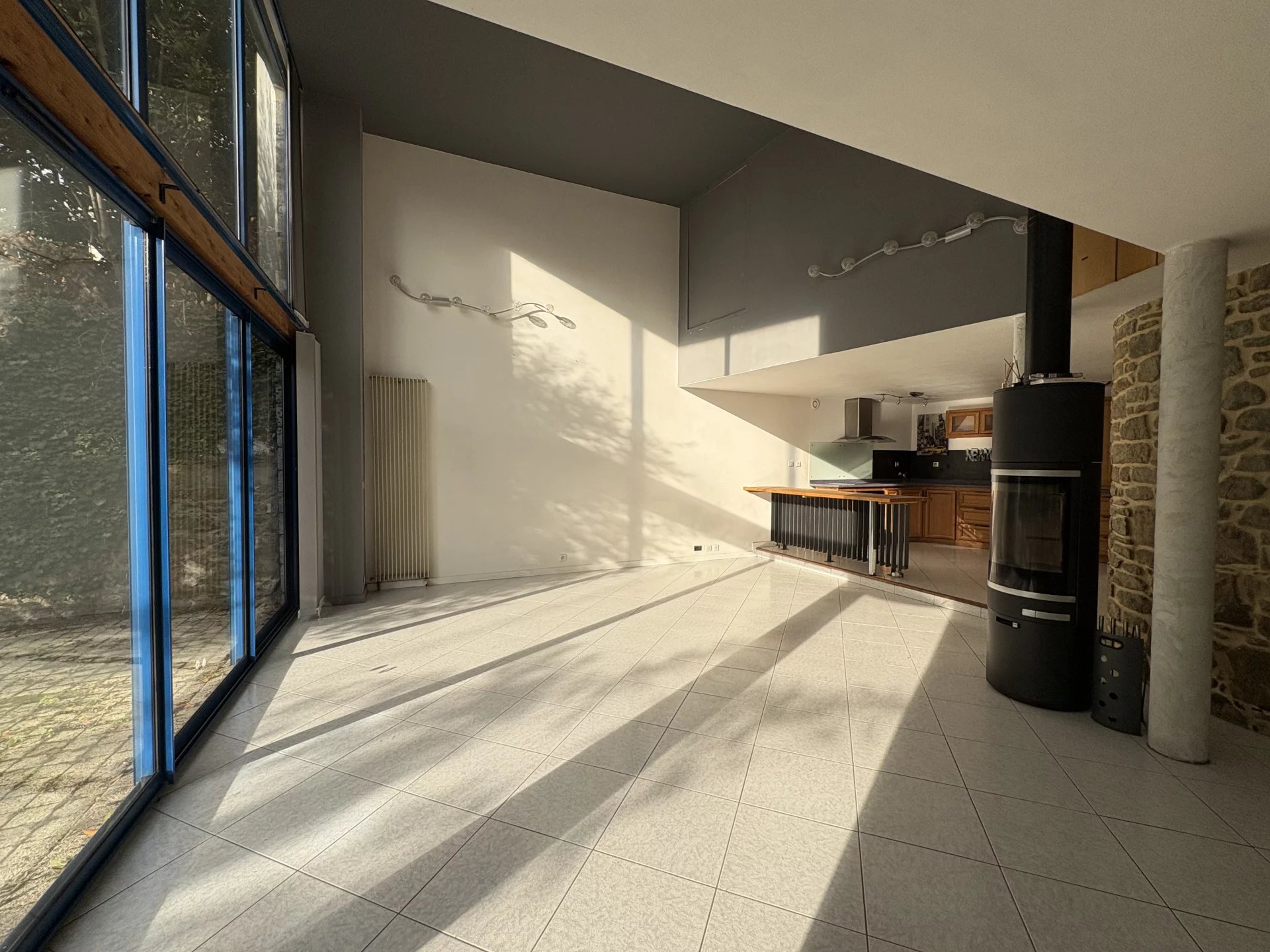 ST BRIEUC, à 2mns à pied du centre historique, maison contemporaine 6 P. comprenant : entrée, vaste séjour salon largement vitré sur jardin parfaitement exposé - cuisine équipée, 4 chambres dont 1 avec salle d'eau privative, salle de bains, W.C., cave et garage - jardin