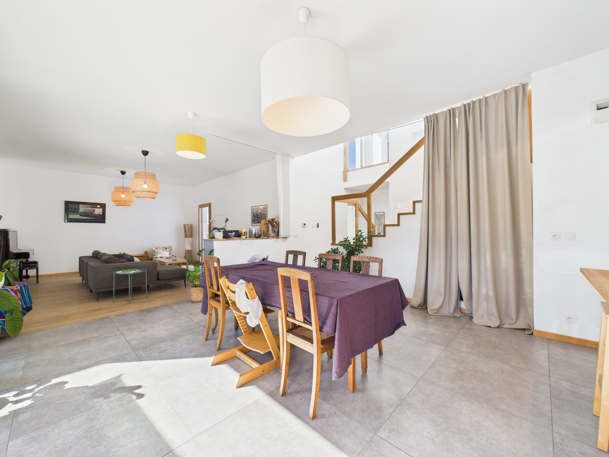 Vaste pièce de vie lumineuse avec salon, séjour et cuisine ouverte entièrement équipée