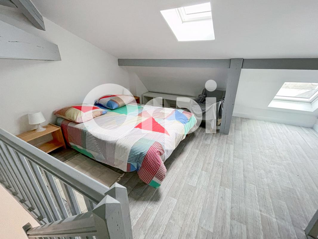 Situé dans une petite copropriété de 11 lots d'habitation à 2 pas des commerces, venez découvrir cet appartement 2 pièces de 51,3 m² Carrez (69m² au sol) au 2ème et dernier étage. Il est composé d'une grande pièce à vivre divisée en salon avec cheminée et cuisine salle à manger, chambre en mezzanine. Il est vendu loué meublé (691 € + 25 € charges).