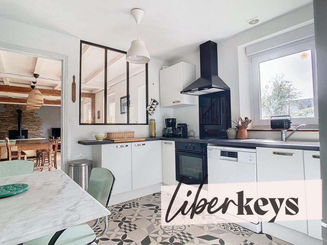 Vous apprécierez son grand séjour chaleureux et sa cuisine ouverte rénovée en 2022. Un bureau en rez de chaussée et un wc. Elle dispose à l'étage de trois chambres et d'une salle de bain avec sèche serviette récent.