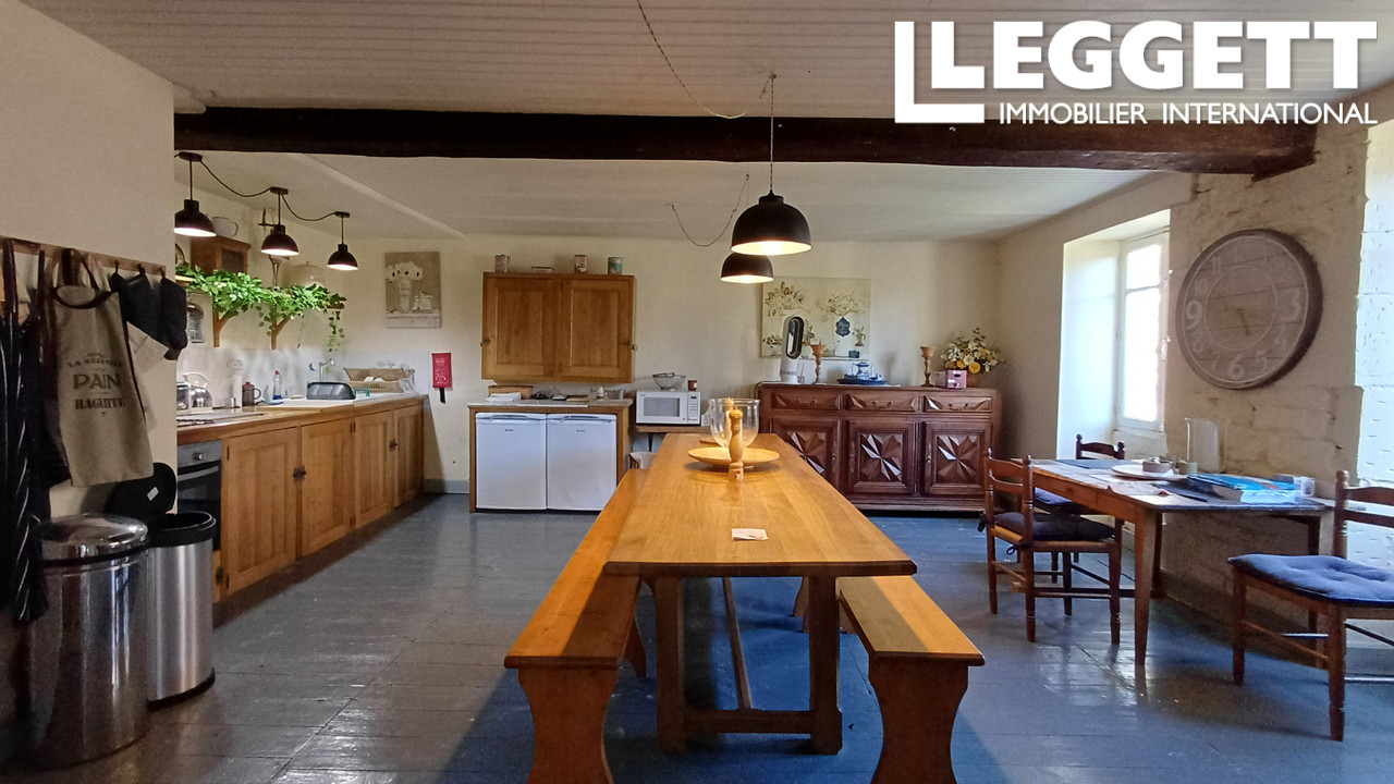 A13778 - Cette magnifique maison charentaise de 6 chambres, 2 salons, 2 cuisines, une grange et un garage vous offre une demeure pleine de charme avec son aspect rustique. Certains travaux à prévoir. Piscine avec terrasses couvertes. Accès à la rivière Charente à 200 m de la maison. Village convivial et rural. Parfait pour des vacances charentaises dans un cadre romantique.