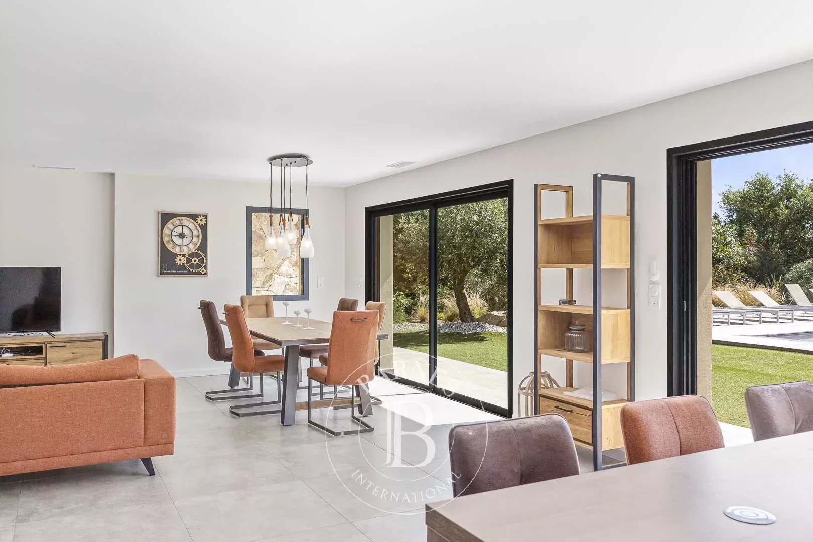 La villa est édifiée sur un terrain paysager d’environ 1 807 m². Elle est agrémentée d’une piscine chauffée de 10 m x 4 m, sécurisée par un volet roulant, et prolongée par un pool house. Un garage vient compléter cette propriété.
