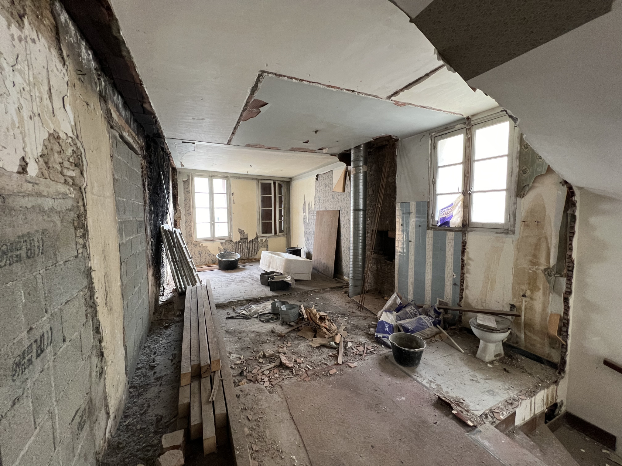 Une deuxième entrée séparée dessert trois plateaux sur hourdis béton d'environ 25, 28 et 30 m2 à rénover et à aménager.