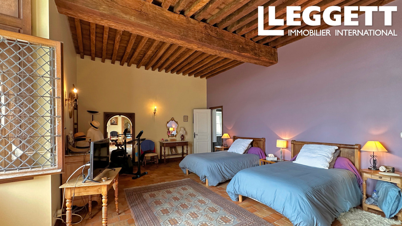 Une belle cuisine d'été avec four à pain, un pigeonnier, une vaste grange attenante, et une grande piscine avec son jacuzzi viennent compléter ce splendide ensemble. En position dominante, et entourée de ses 5 hectares de terres, elle offre des vues absolument magnifiques sur le village et son château.