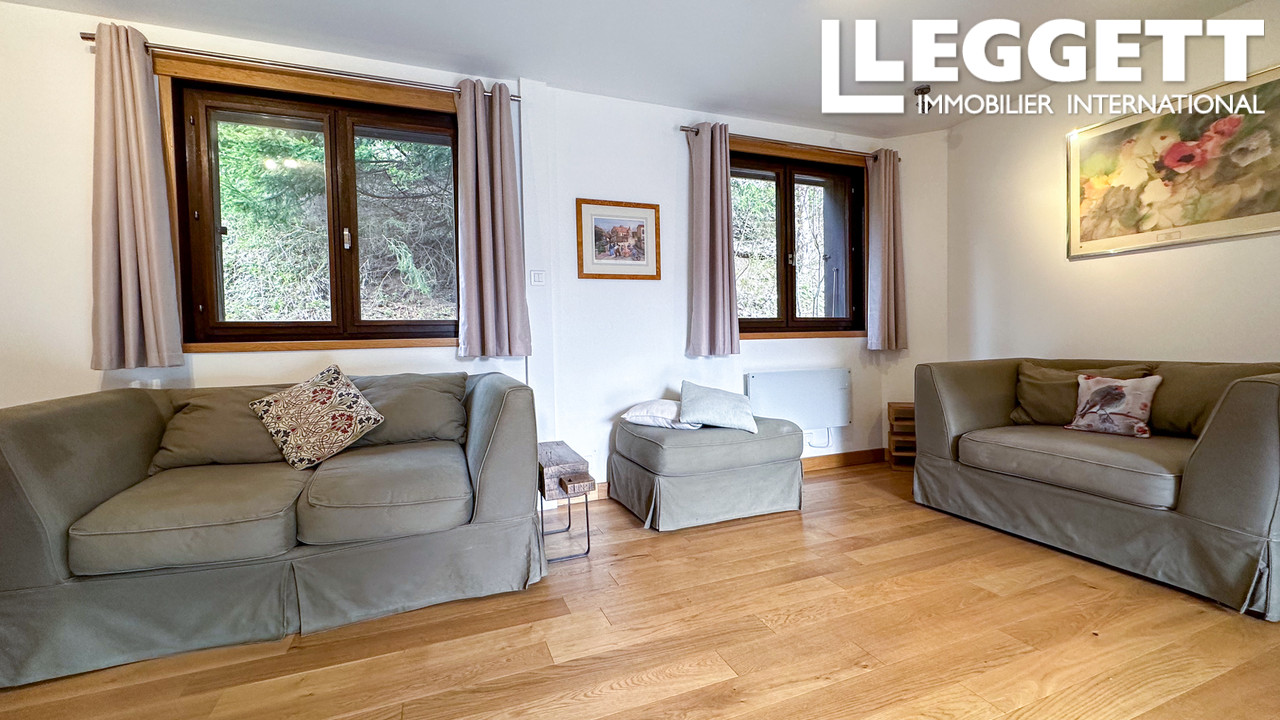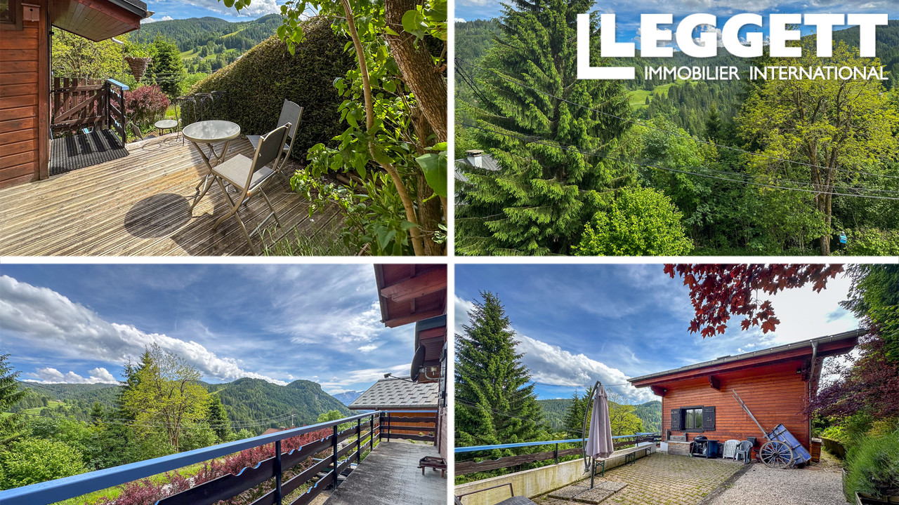 A28420JST74 - Ce chalet, sur 3 niveaux, est situé dans un quartier tranquille avec un accès pratique au centre des Gets et à l'arrêt de ski-bus. La propriété comprend également des éléments uniques tels qu'un mazot et un abreuvoir en bois.