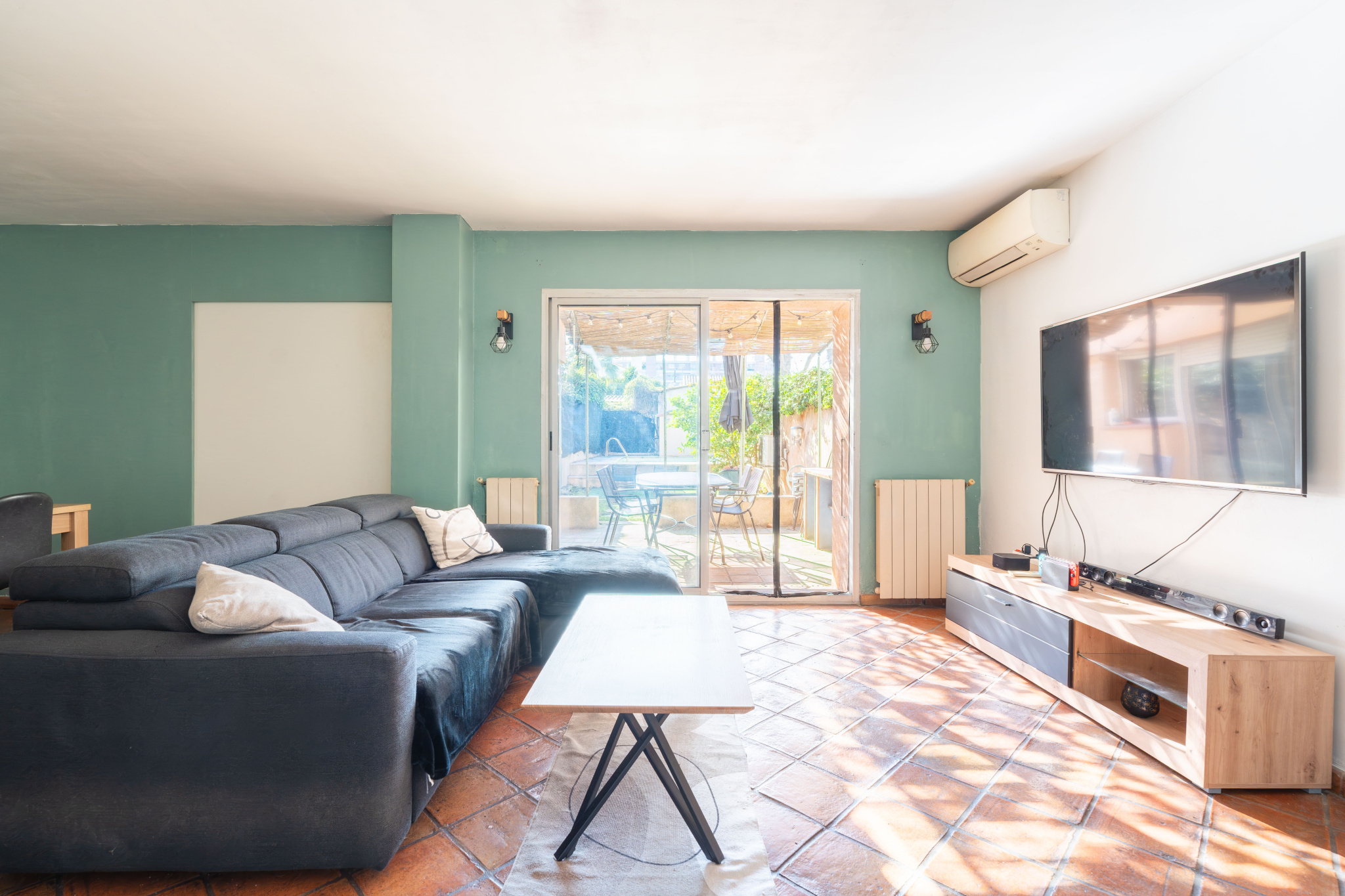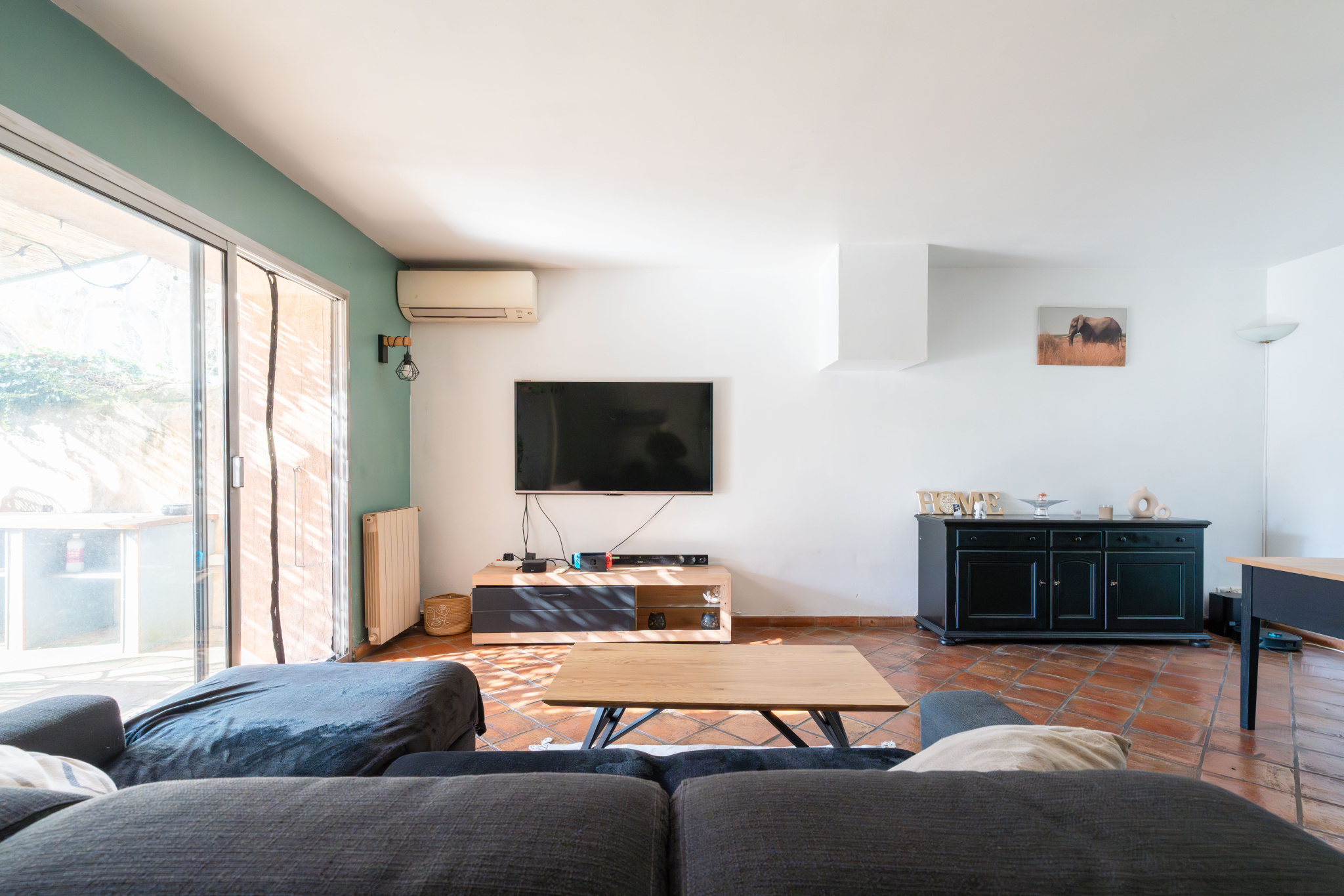 Dès l'entrée, vous découvrez une agréable pièce de vie lumineuse grâce à de larges baies vitrées, composée d'un séjour et d'un salon ouverts sur l'extérieur. La cuisine semi-ouverte, prolongée par une spacieuse arrière-cuisine, donne directement accès à la terrasse et au jardin, créant une belle continuité entre intérieur et extérieur.