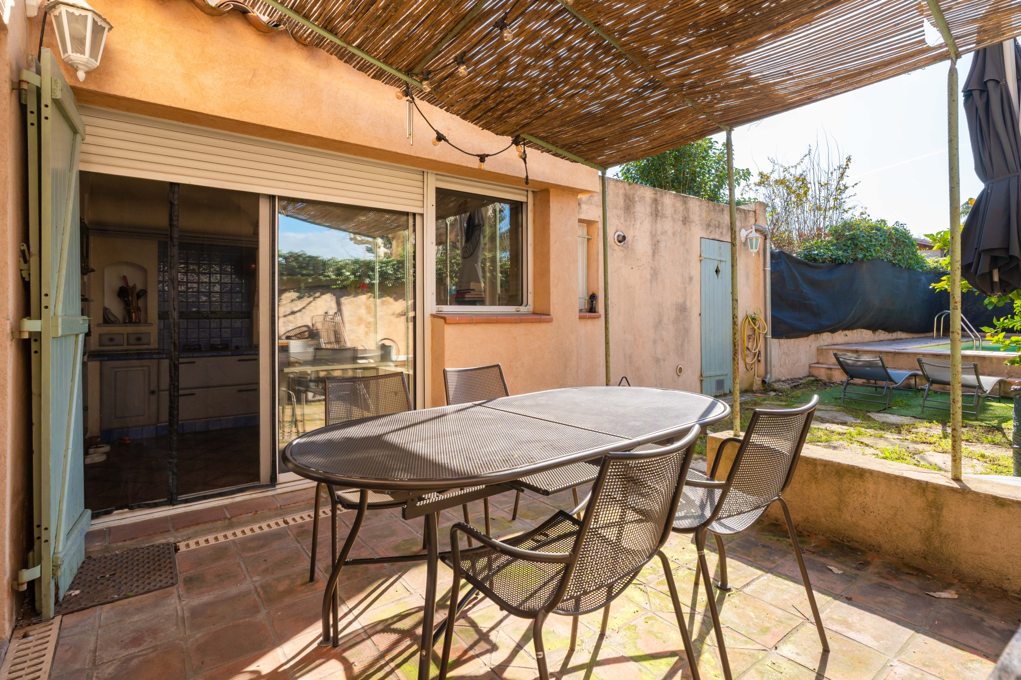 Les extérieurs, véritables atouts de la propriété, proposent plusieurs espaces de détente : jardin, terrasse, piscine, ainsi qu'une dépendance offrant un espace de stockage et un poolhouse.