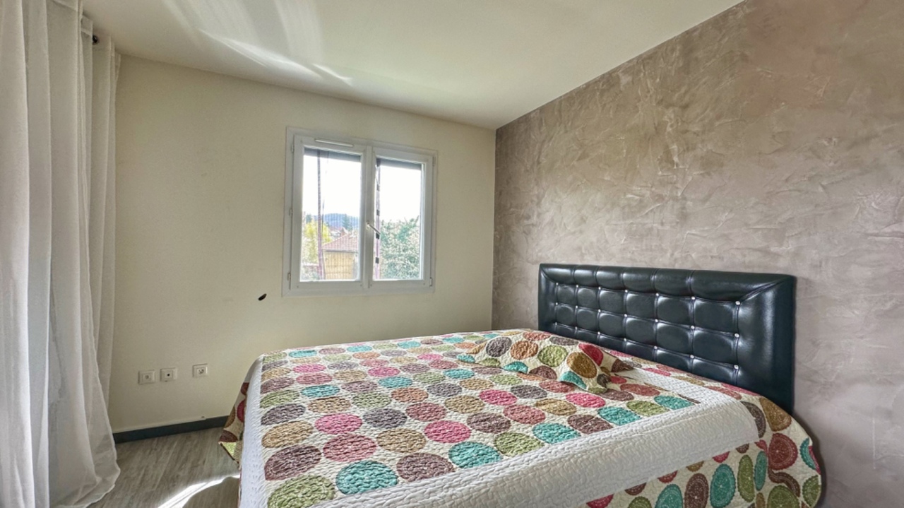 A l’étage, un couloir dessert 4 chambres (2 avec balcon, une avec terrasse et 3 avec placard) et une SDB avec WC suspendu.