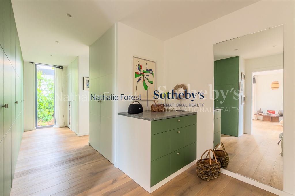 Toujours au rez-de-chaussée, vous découvrirez une fabuleuse master suite, véritable cocon de luxe, incorporant une chambre spacieuse, un dressing sur mesure et une splendide salle de bains en marbre blanc de la maison Varlet.