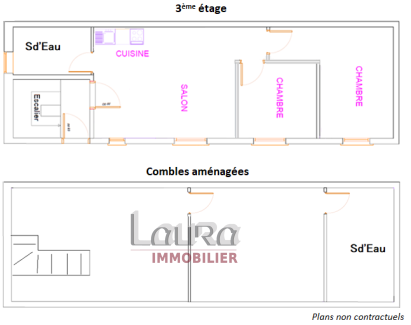 Au 3ème étage une Belle pièce à vivre, prête à accueillir la cuisine qui vous correspond, une Salle d'eau avec toilette suspendu, douche à l'italienne et vasque, ainsi qu'un couloir desservant deux Chambres.