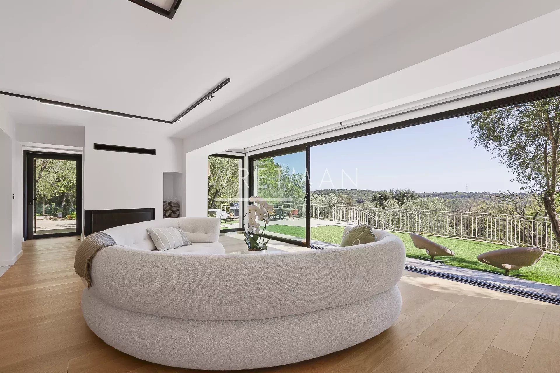 Cette villa de 190 m2 entièrement rénovée est en position dominante, exposée plein sud avec une vue dégagée sans vis-à-vis, offre un confort absolu et une parfaite harmonie avec la nature environnante.
