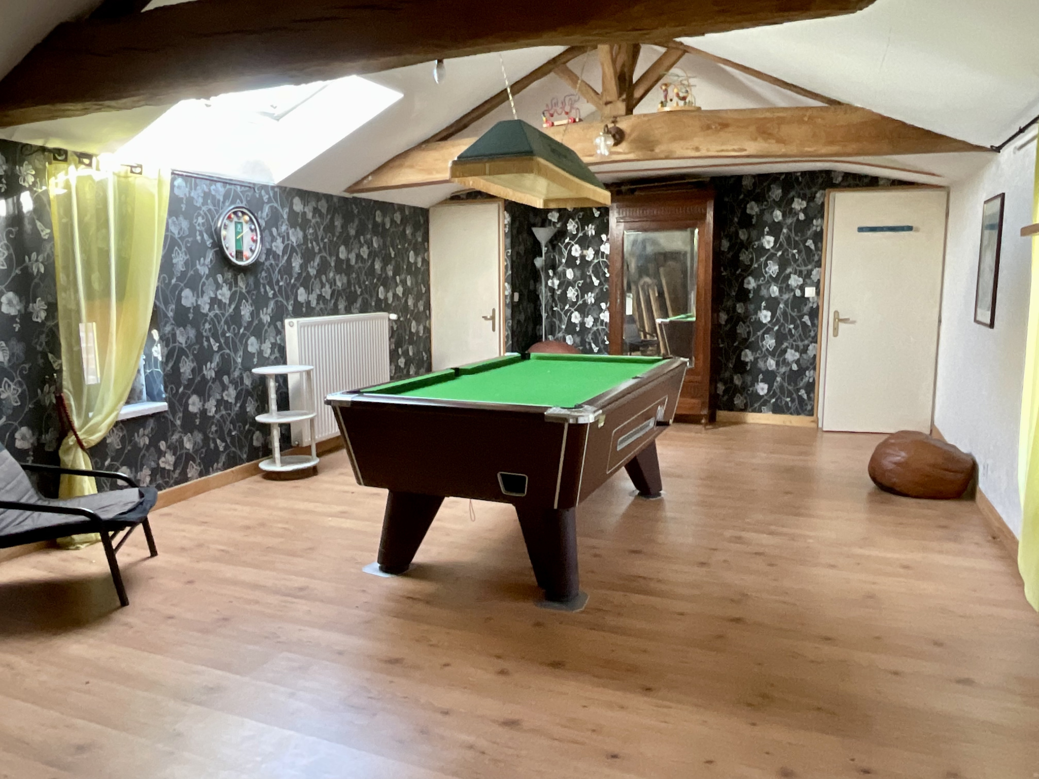 A l'étage vous découvrirez 4 belles chambres dont 1 avec une salle de bain, 1 bureau, 1 salle de bains et une grande pièce de jeux qui peut être une chambre. Les combles sont aménageables (d'environ 130m2) Sur un terrain arboré de 2000 m2 se profile une piscine avec abri (au sel) avec un pool house, ainsi que des dépendances en pierres à réhabiliter a votre gout.