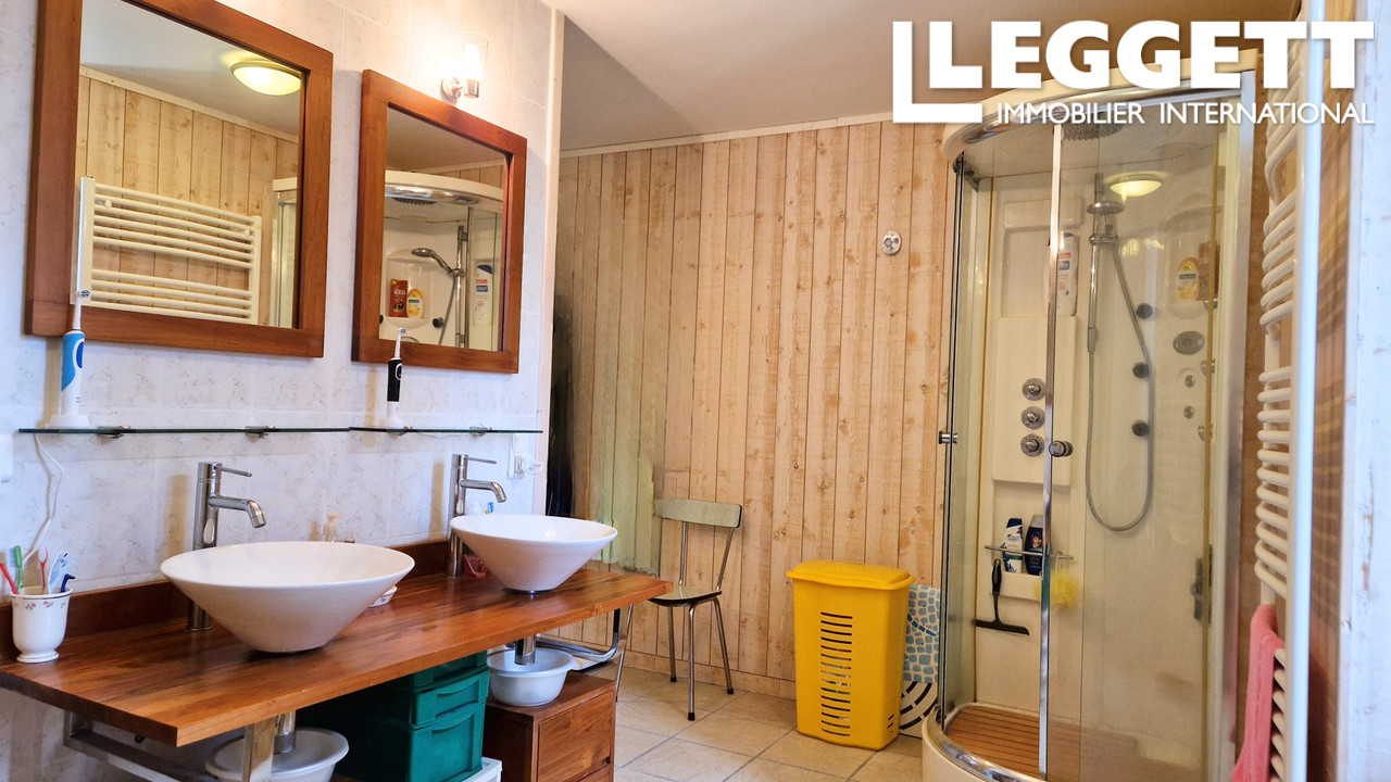 -La salle de bain est composée d'une douche, d'une baignoire et deux éviers