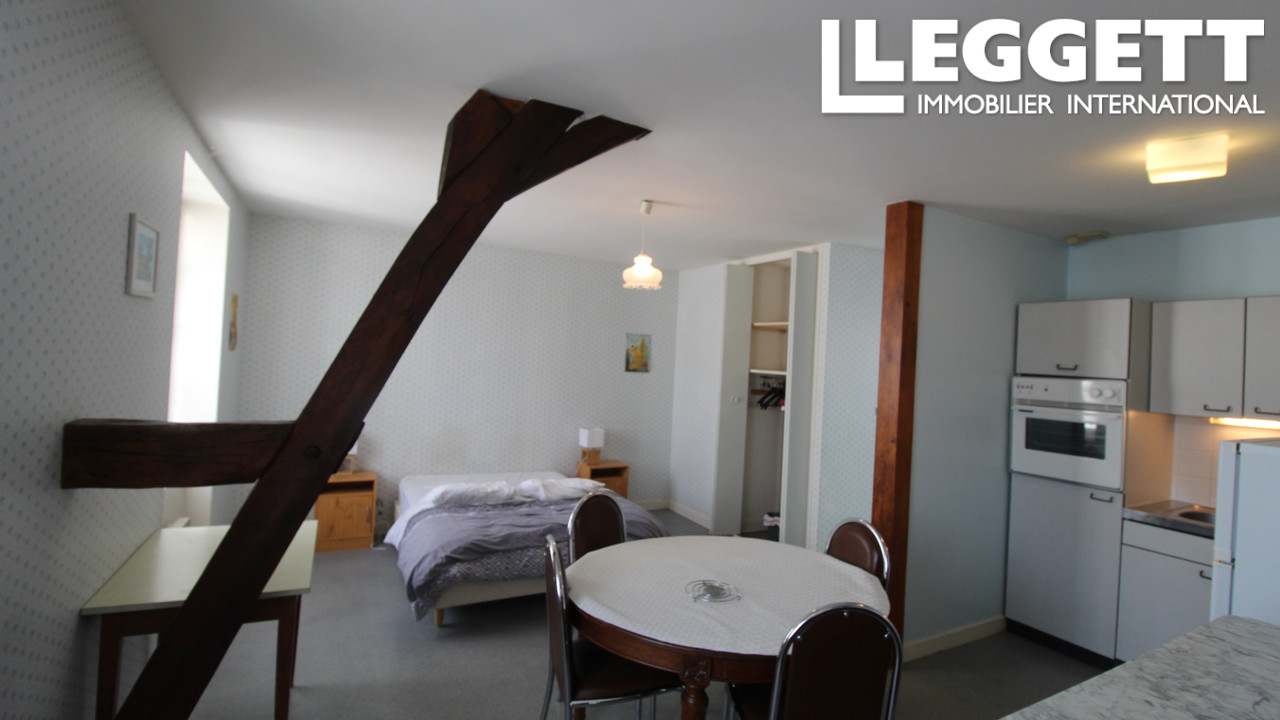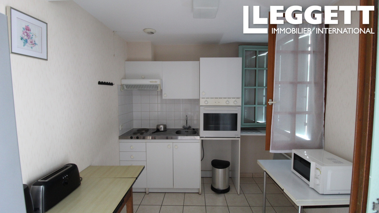 Studio 14 : pièce de vie (17m2) avec coin cuisine (4m2) et salle d'eau (5m2) attenante.