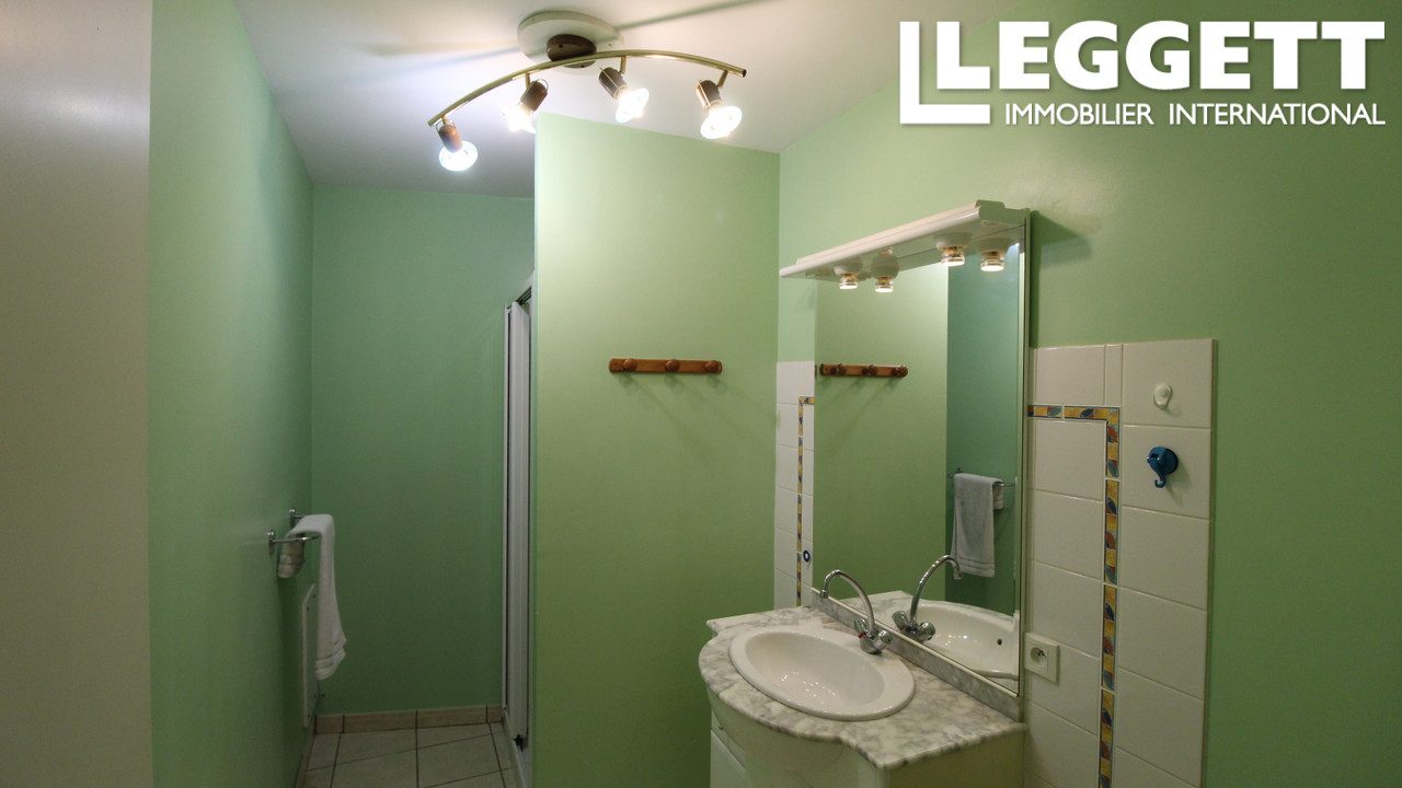 Appartement au RDC : salon (15m2), chambre (12m2), salle d'eau (5m2) et cuisine (4m2). 1er étage: Chambre (14m2) et salle d'eau (8m2).