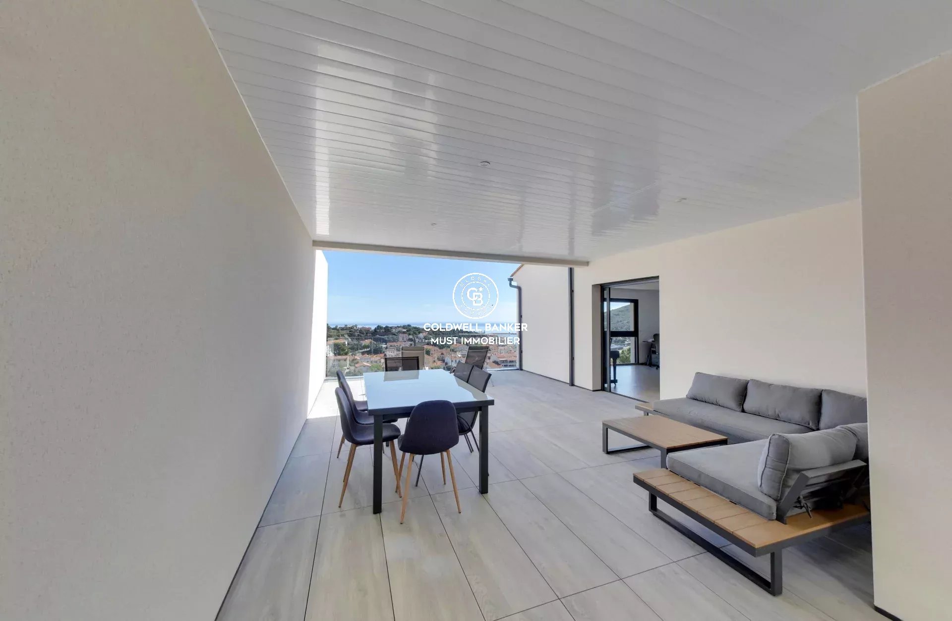 A proximité de Collioure, venez découvrir cette belle villa contemporaine, vendue meublée, offrant une vue imprenable sur la mer, le port et les collines, dans un quartier privilégié sur les hauteurs de Port-Vendres.