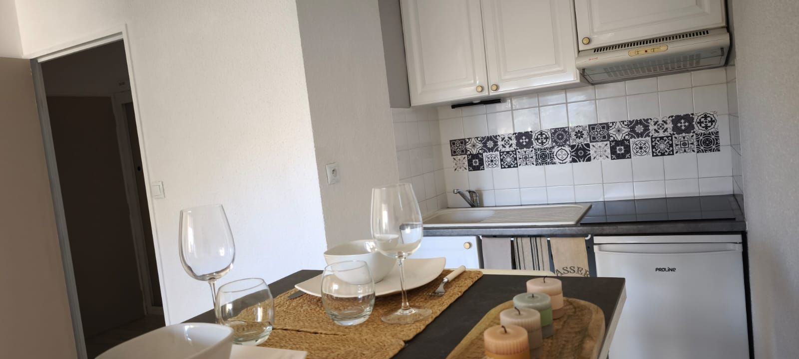 D'une entrée avec placard desservant un séjour salon avec coin cuisine avec balcon exposé SUD, une grande chambre avec placard , une salle d'eau et un wc indépendant.