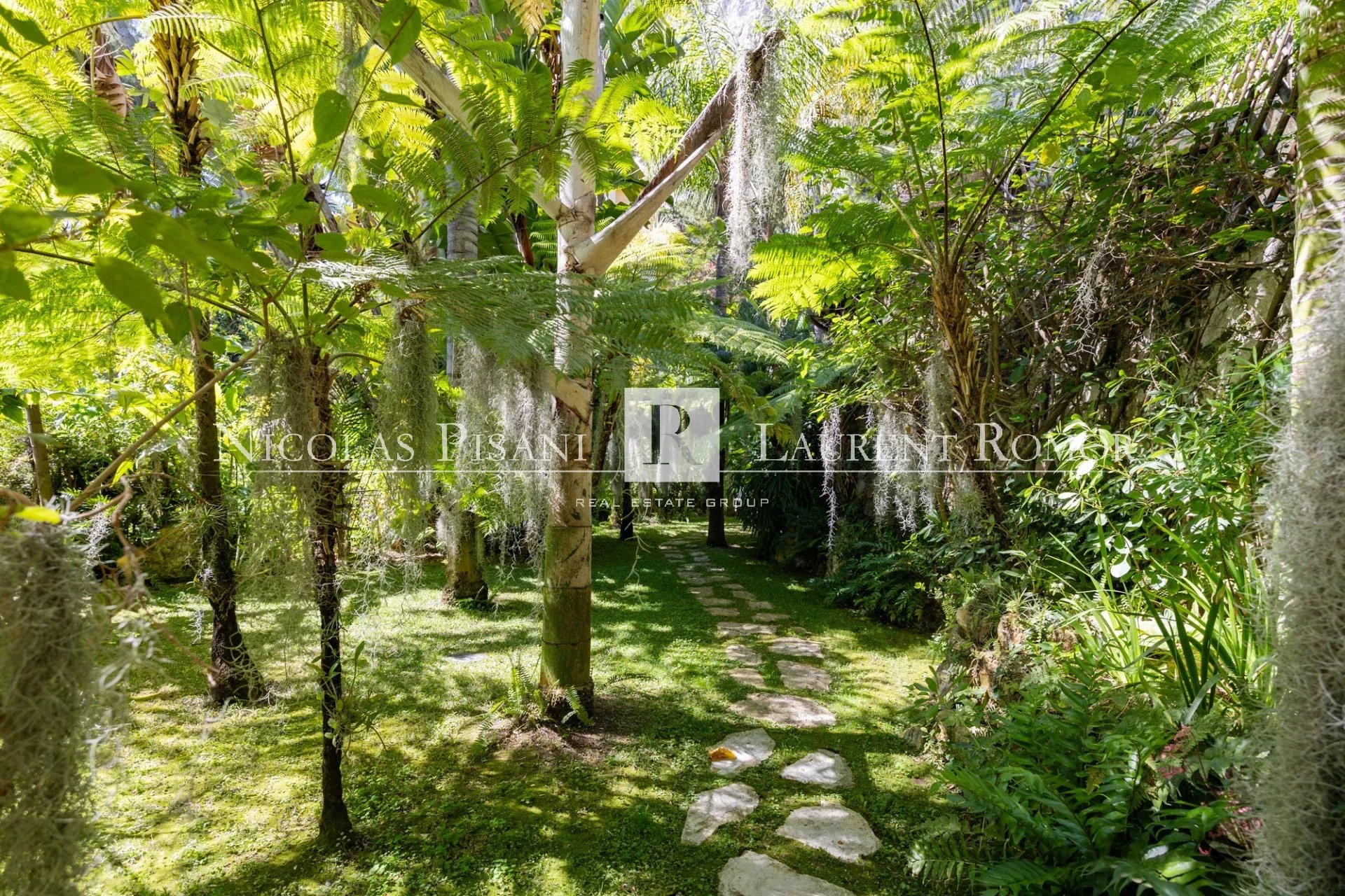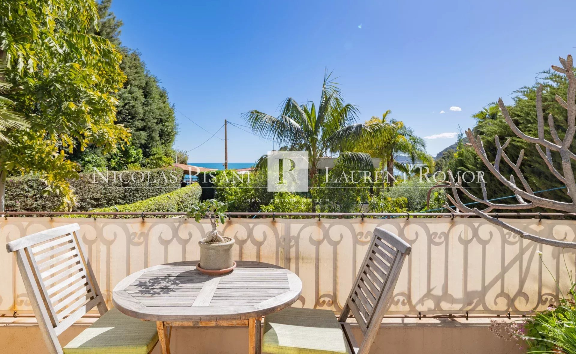 A quelques pas de la plage de la Baie d'Eze, cette charmante villa en parfait état vous dépaysera de par son terrain de 1473 m² arboré de plantes tropicales et disposant d'un bassin chauffé.