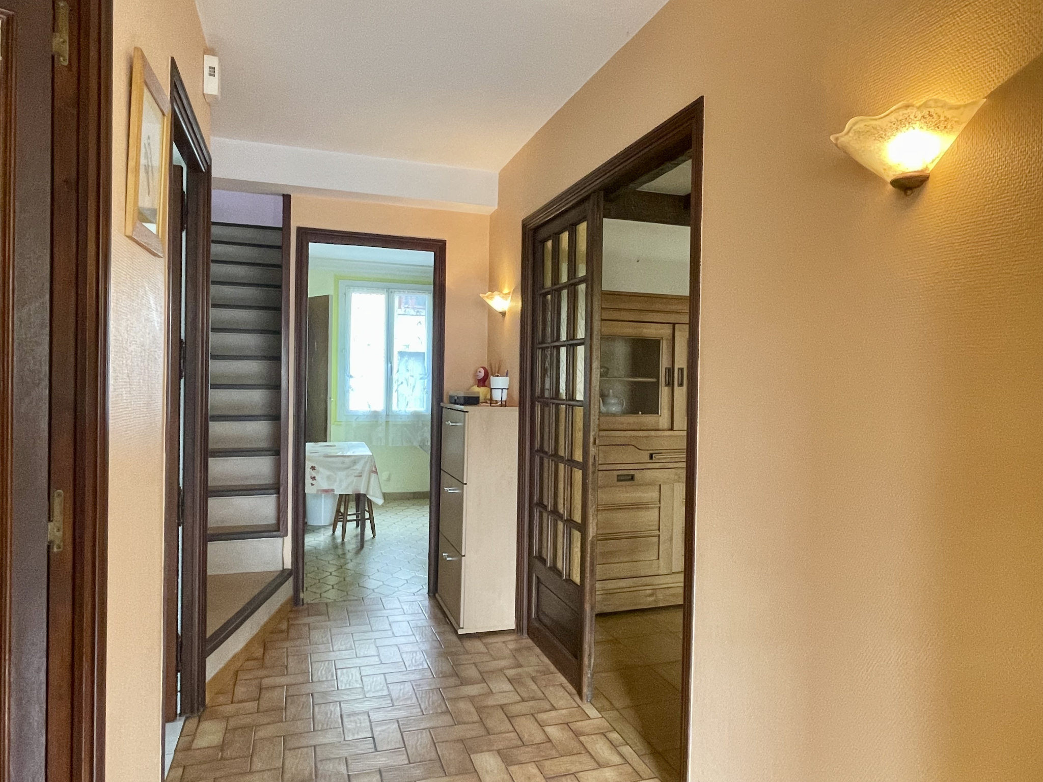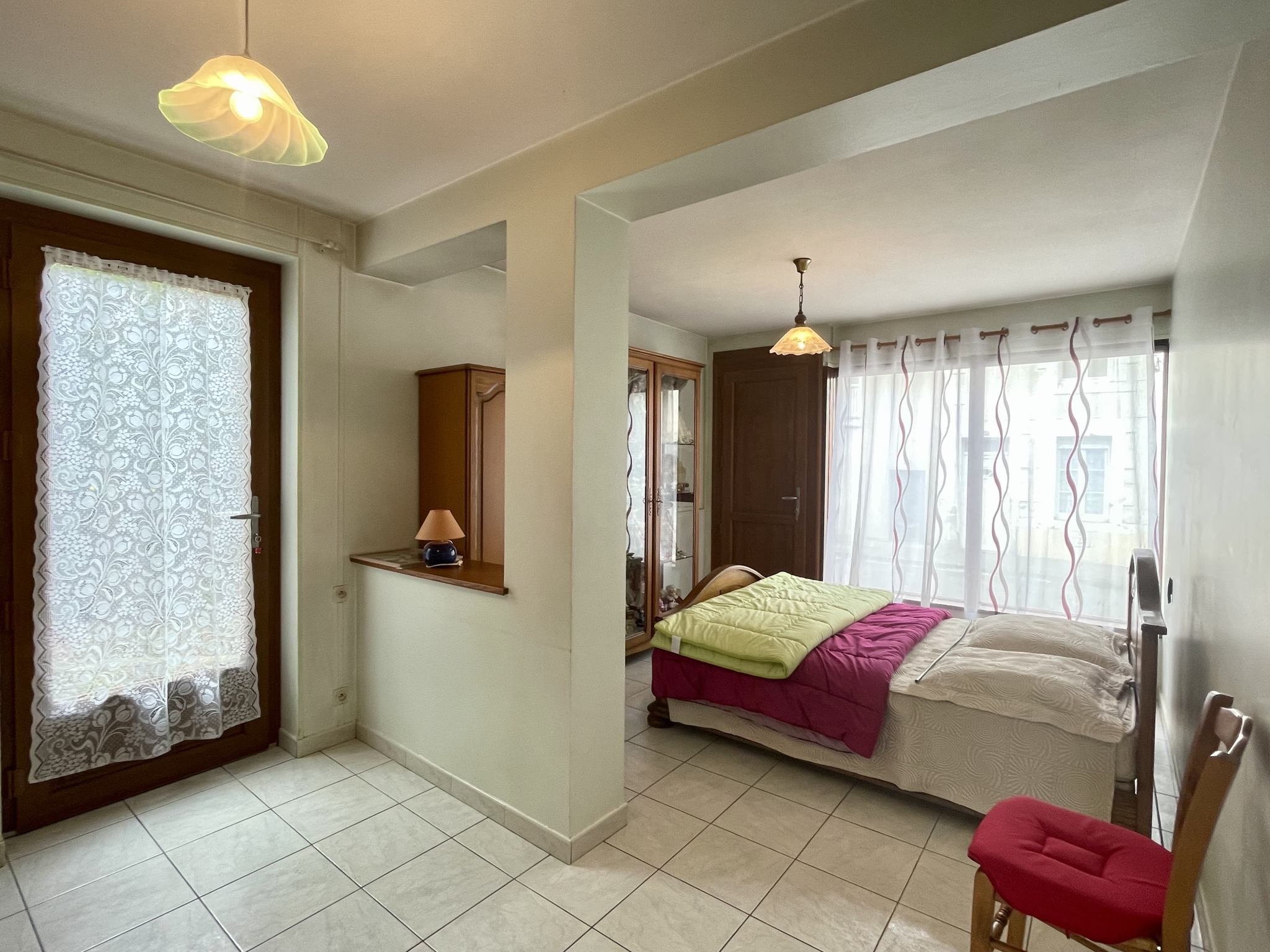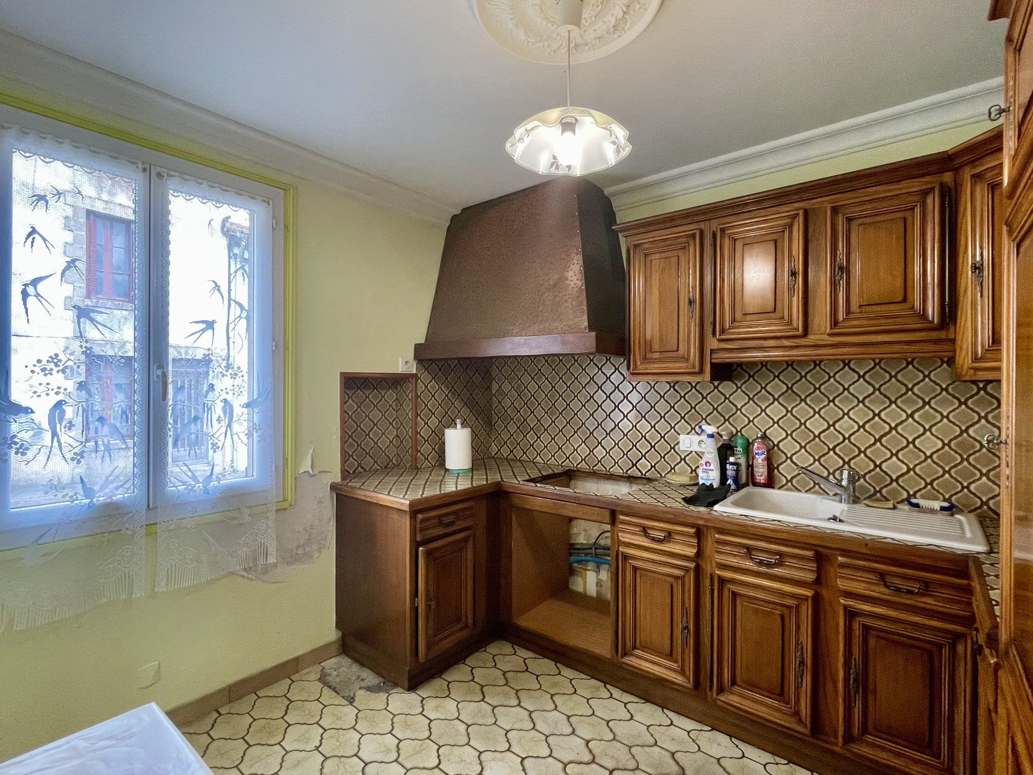 REF. 34613 : 113 400 euros H.A.I, Confolens (16), tous commerces, en bord de route, sans vis à vis, maison de ville mitoyenne, tout confort, en partie rénovée, à usage d'habitation, 139 m2 env. utilisables, composée au rez de chaussée : Véranda de 18 m2, entrée, cuisine, salon/séjour (cheminée), cabinet de toilette, 1 chambre, dressing, à l'étage : palier, 4 chambres, salle d'eau, wc, chauffage électrique, assainissement collectif CONFORME. Grand garage indépendant de 145 m2 avec cabinet toilette, petit toit de 15 m2, courette attenante, le tout sur 444 m2.