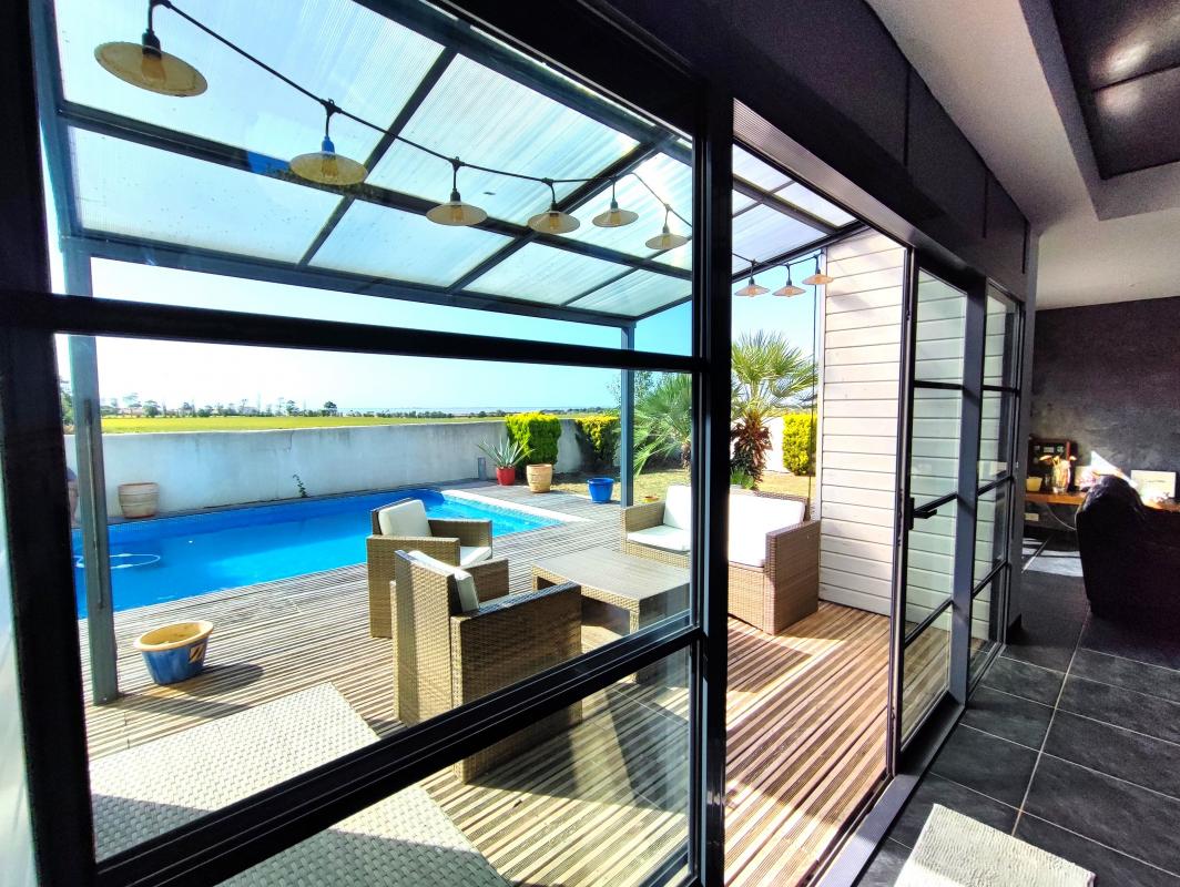 - VUE MER - Marsilly - Belle maison contemporaine , conçue sur des plans d'architecte. Elle offre une belle entrée avec placard et toilettes. Une grande pièce à vivre de plus de 60m² lumineuse, avec cuisine aménagée et équipée ouvrant sur un jardin avec piscine et vue sur mer, arrière-cuisine, suite parentale avec dressing et SDE. On accède au 1er étage par une magnifique rochelle, offrant un espace bureau avec vue inspirante sur la mer, 2 chambres séparées par un dressing et une salle de bains. Autour de la piscine, un bar d'été, un local piscine. Un garage offrant 2 places de stationnement complète l'ensemble. Possibilité de se garer également sur la parcelle.