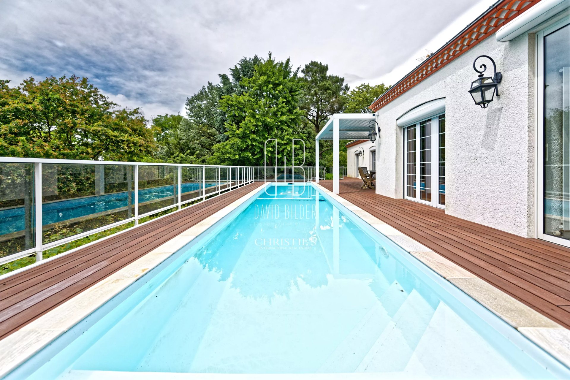 Une cuisine équipée haut de gamme, des matériaux sélectionnés avec beaucoup de goût, une grande arrière-cuisine, une salle de jeux, une terrasse couverte avec son Spa et sa superbe vue dégagée sur le parc.