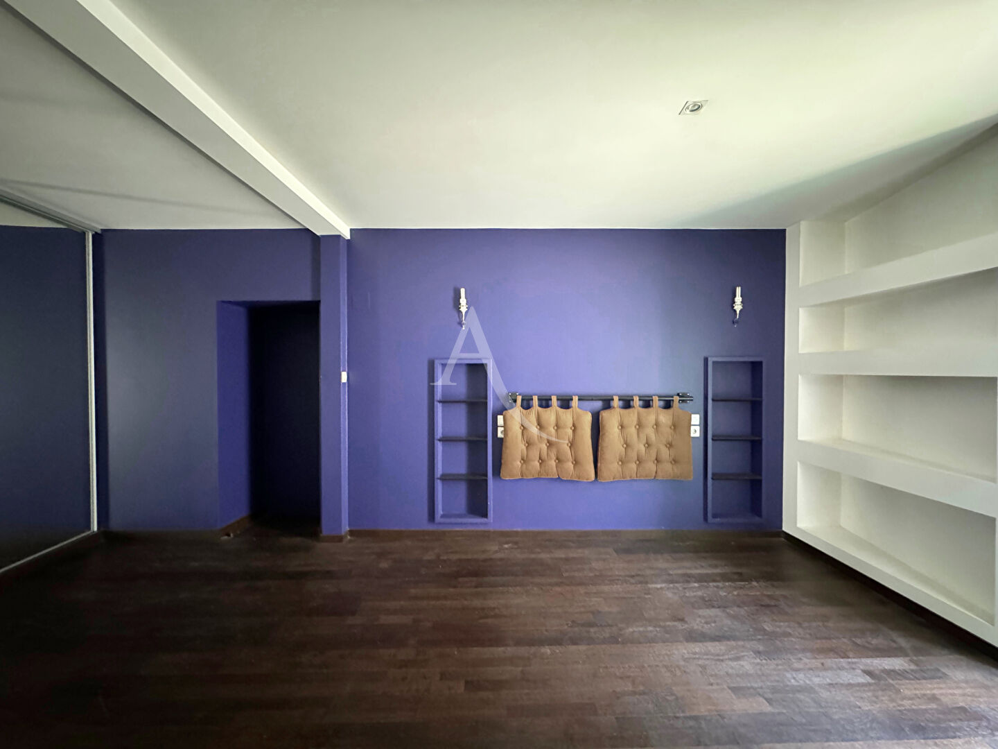 - étage : dégagement, 2 chambres, chambre d'enfant, salon aménageable en 2 chambres en cloisonnant la bibliothèque (ou possibilité d'aménager une chambre avec dressing), salle de douches avec WC et petit balcon.