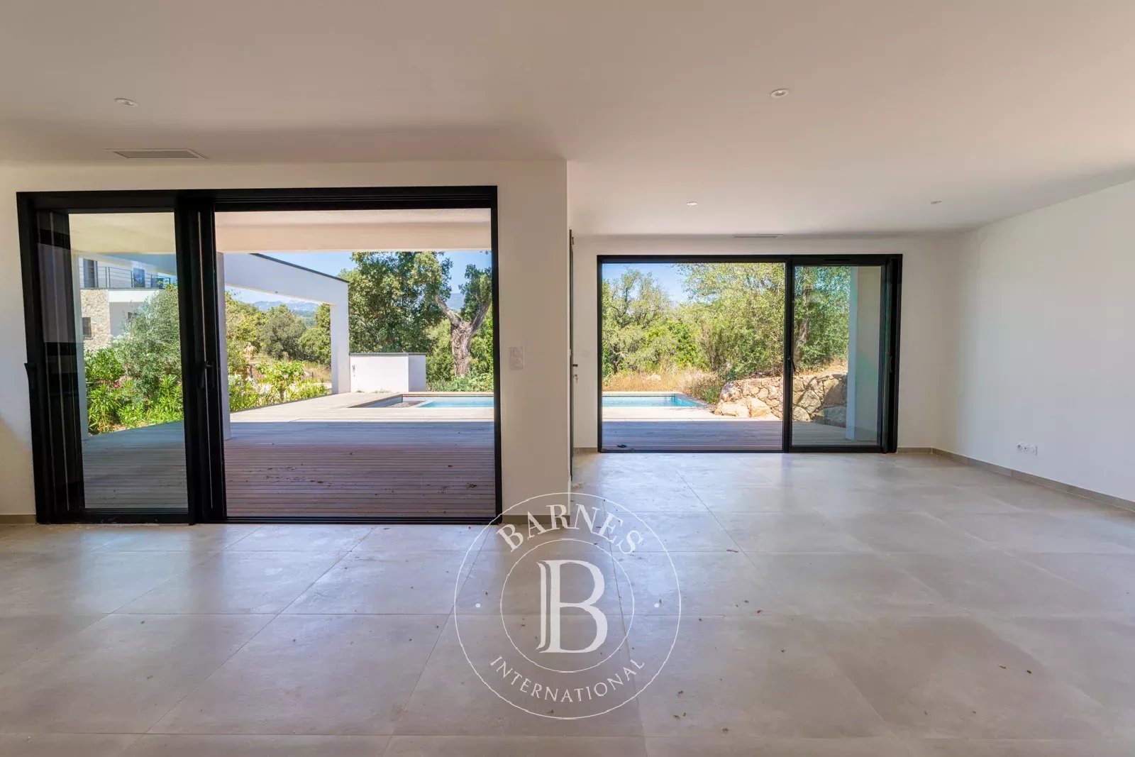 À deux pas du village marin et de la baie de Pinarello, cette villa neuve d’environ 170 m² sur deux niveaux offre une vue dégagée sur les montagnes.
