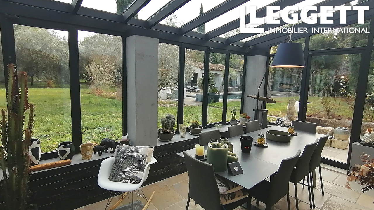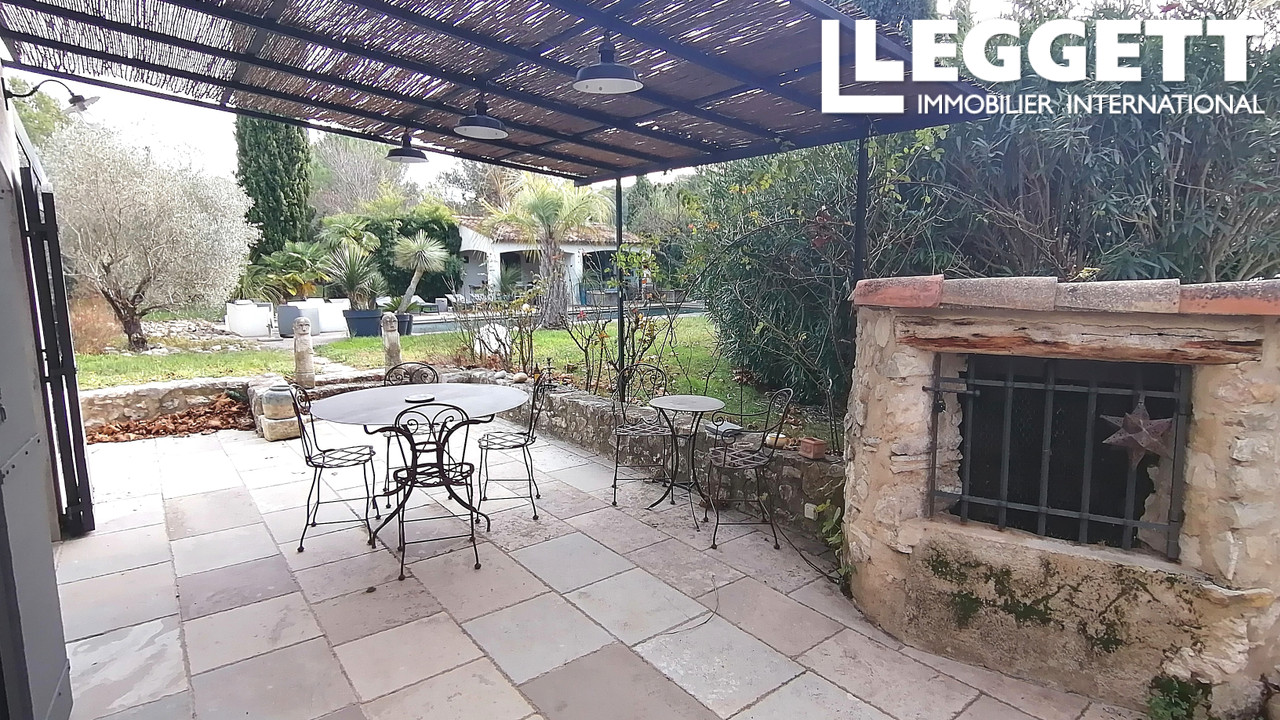 A29181LOS13 - Ce charmant relais de chasse rénové, est situé proche d'Aix-en-Provence, offrant une retraite paisible à la campagne près de l'adorable village provençal de Ventabren. Niché au coeur d'un jardin de 2 500 m2, richement paysagé avec des essences méditerranéennes et des arbres fruitiers, la propriété comprend une spacieuse maison principale en pierre. Parmi ses attraits, on trouve un salon confortable avec une jolie cheminée, une salle à manger lumineuse dans une véranda en fer forgé, une cuisine moderne et quatre chambres et 3 salles d'eaux. Les commodités supplémentaires comprennent une piscine avec terrasses en teck, un pool house et cuisine d'été, une chambre d'amis séparée, un studio indépendant ainsi qu'un garage, un abri voiture, un abri de jardin, un potager et un puits. Avec son exposition plein sud, sa décoration raffinée et son état impeccable, cette propriété est idéale comme résidence principale ou secondaire, offrant le charme ancien et les conforts de rénovations modernes.