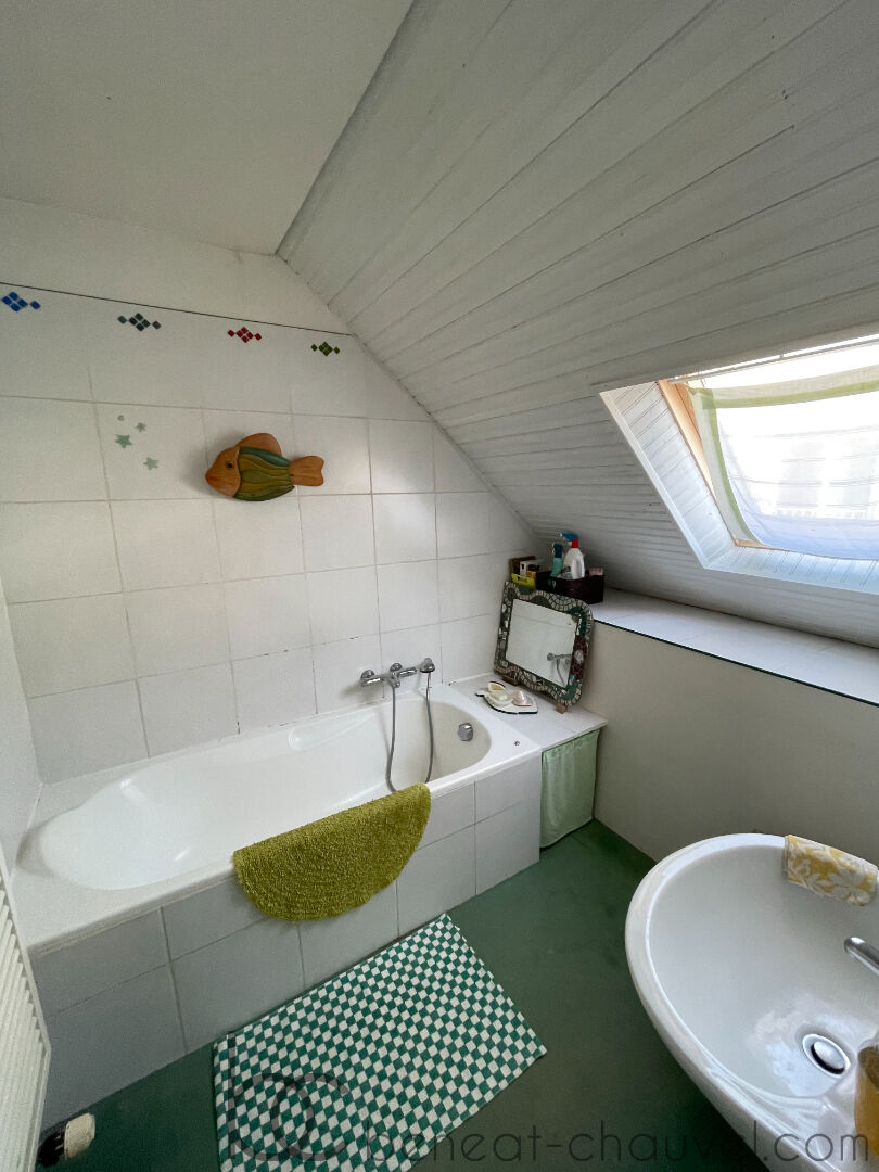 À l'étage, l'espace nuit se compose de deux chambres avec placard, d'une salle de bains, d'un WC et d'une lingerie pratique.