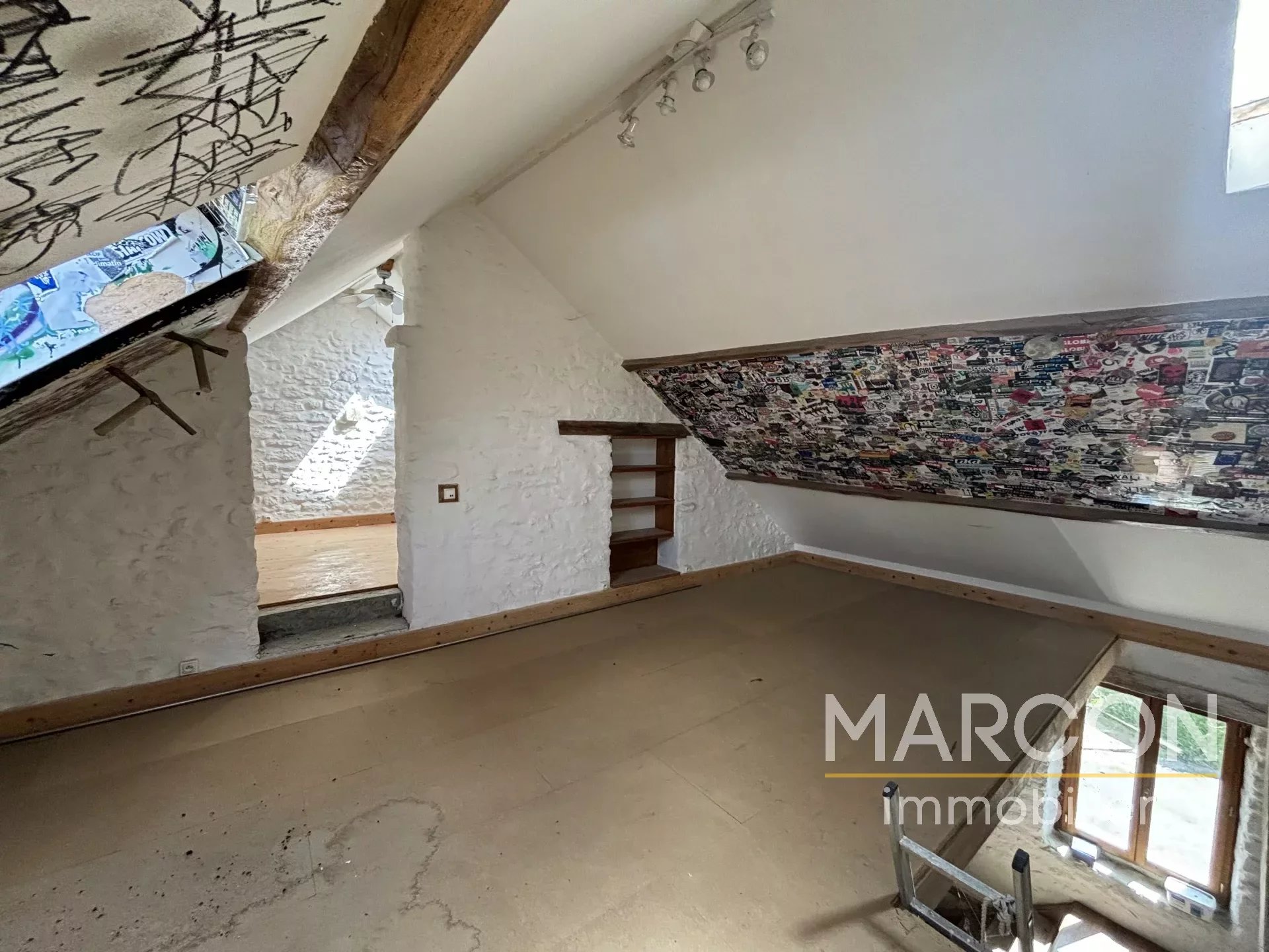 Au deuxième étage, combles aménagées avec une grande chambre et un bureau.