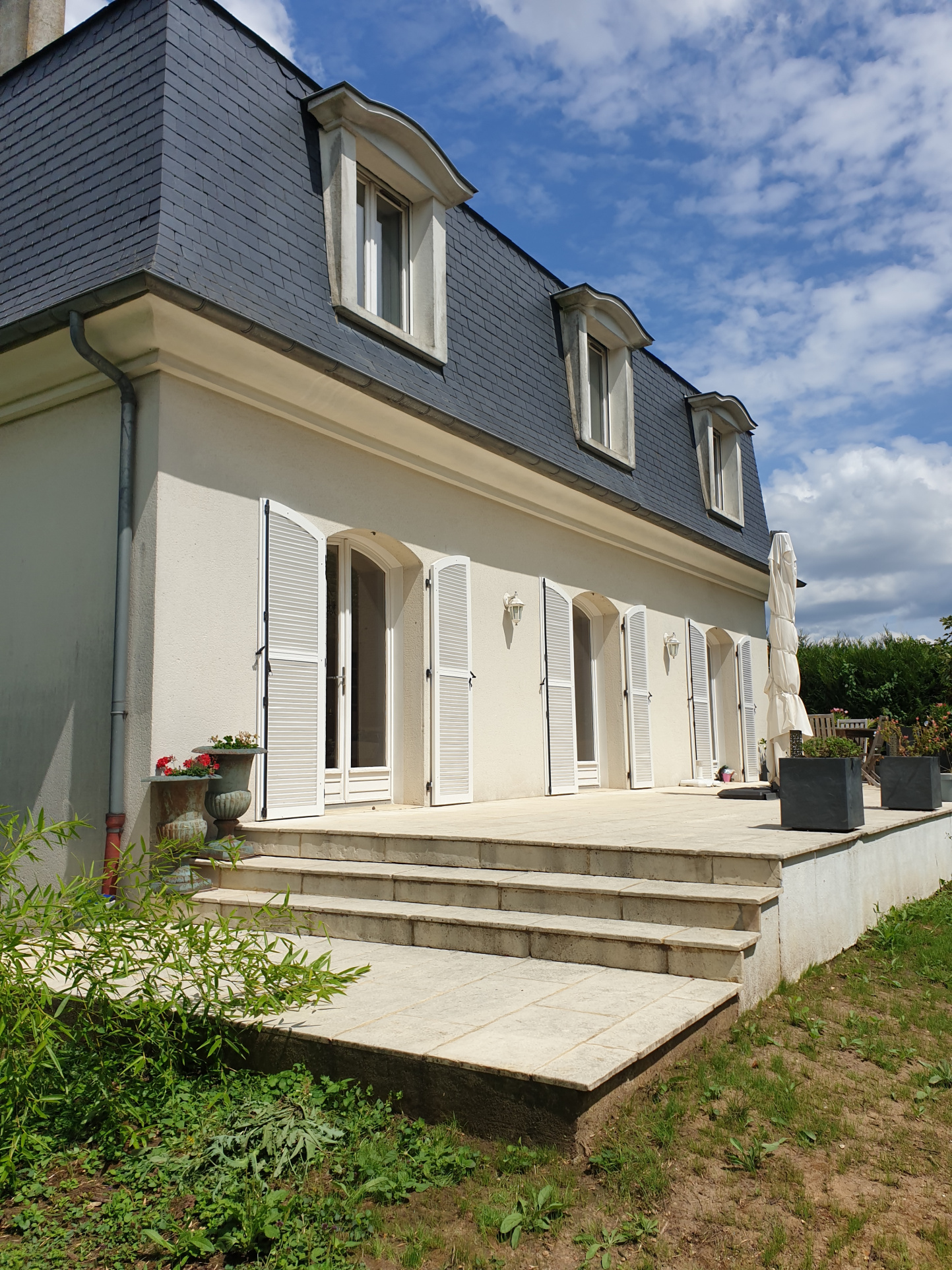 Maison mansart élevée sur un terrain arboré de 690 m2.