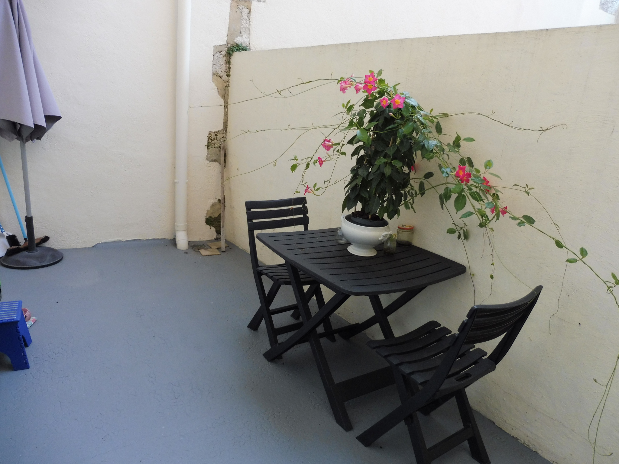 3éme étage: pièce, terrasse couverte, petite jardin et préau.