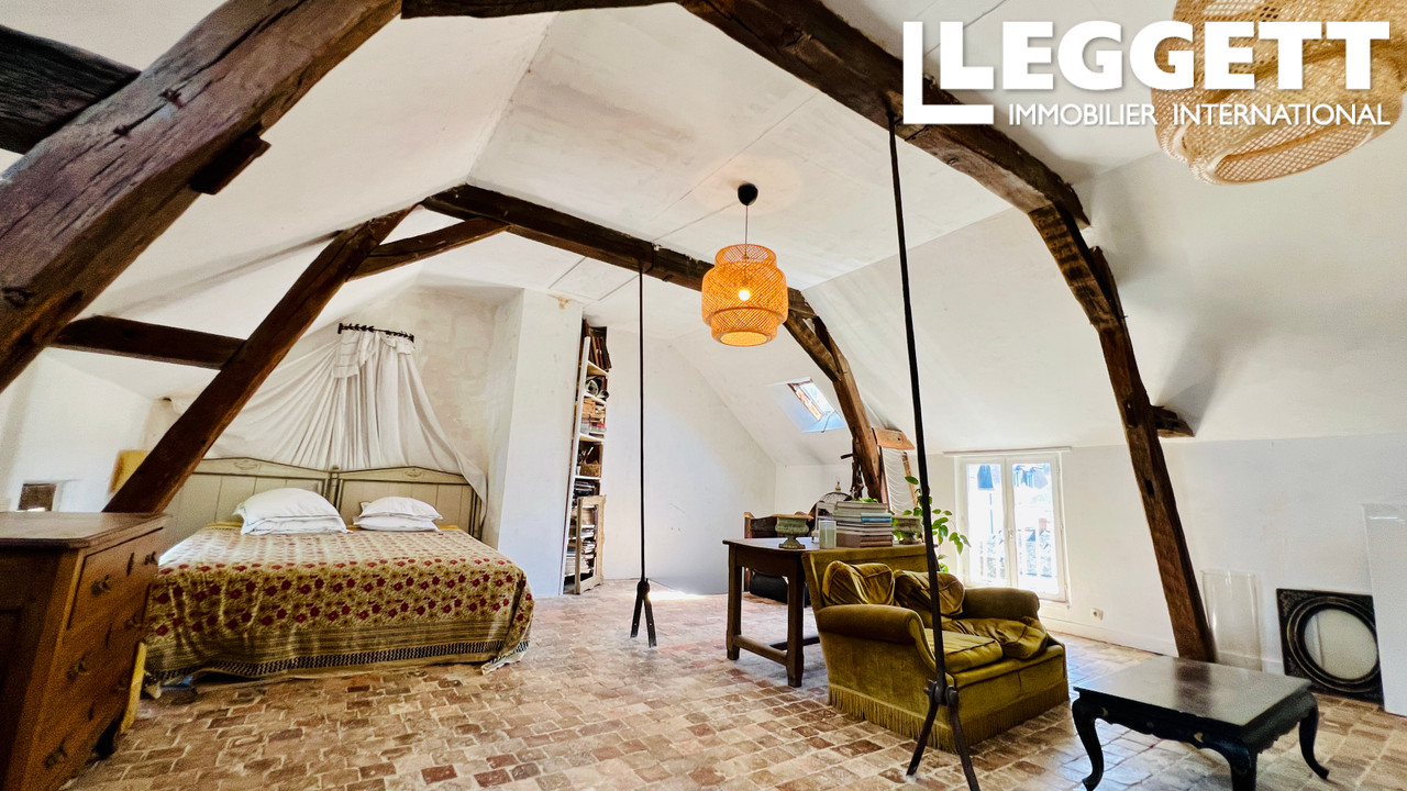 Chaque étage est lumineux, avec de larges paliers, servis par un remarquable escalier en chêne. La charmante chambre principale du premier étage dispose d'une salle de bains privative à laquelle on accède également par le palier. Deux chambres lumineuses au deuxième étage partagent une salle de douche. L'immense pièce du grenier est vraiment magnifique, avec ses poutres apparentes, ses carreaux de terre cuite d'origine et d'autres vues sur la Loire, y compris depuis une fenêtre en oeil-de-boeuf. Le sous-sol offre de nombreux espaces de rangement et un accès à la cour commune.