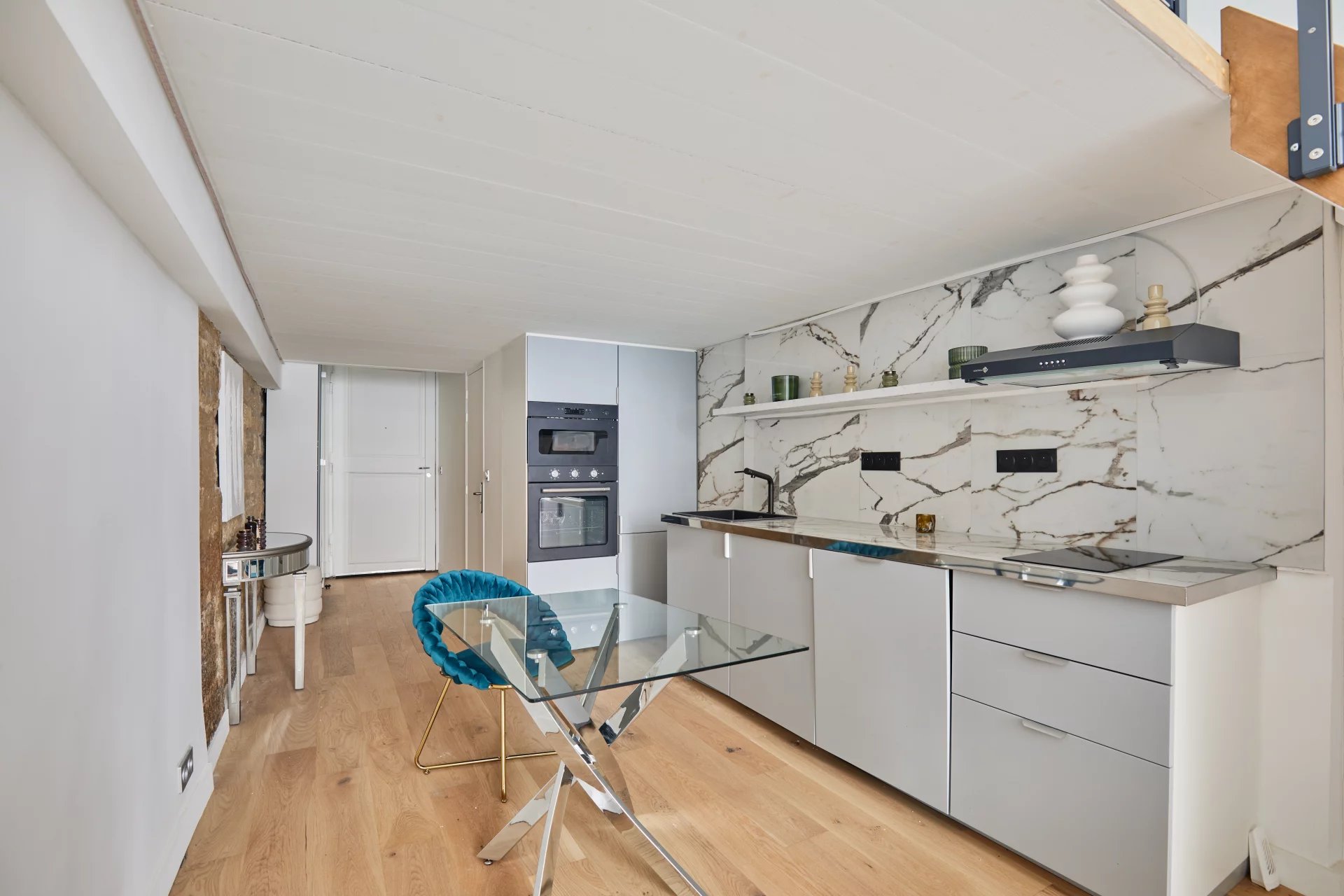 A l'étage noble d'un immeuble du 19ème, découvrez le charme de l'ancien dans un bel immeuble inscrit au patrimoine au coeur du quartier de la Monnaie.