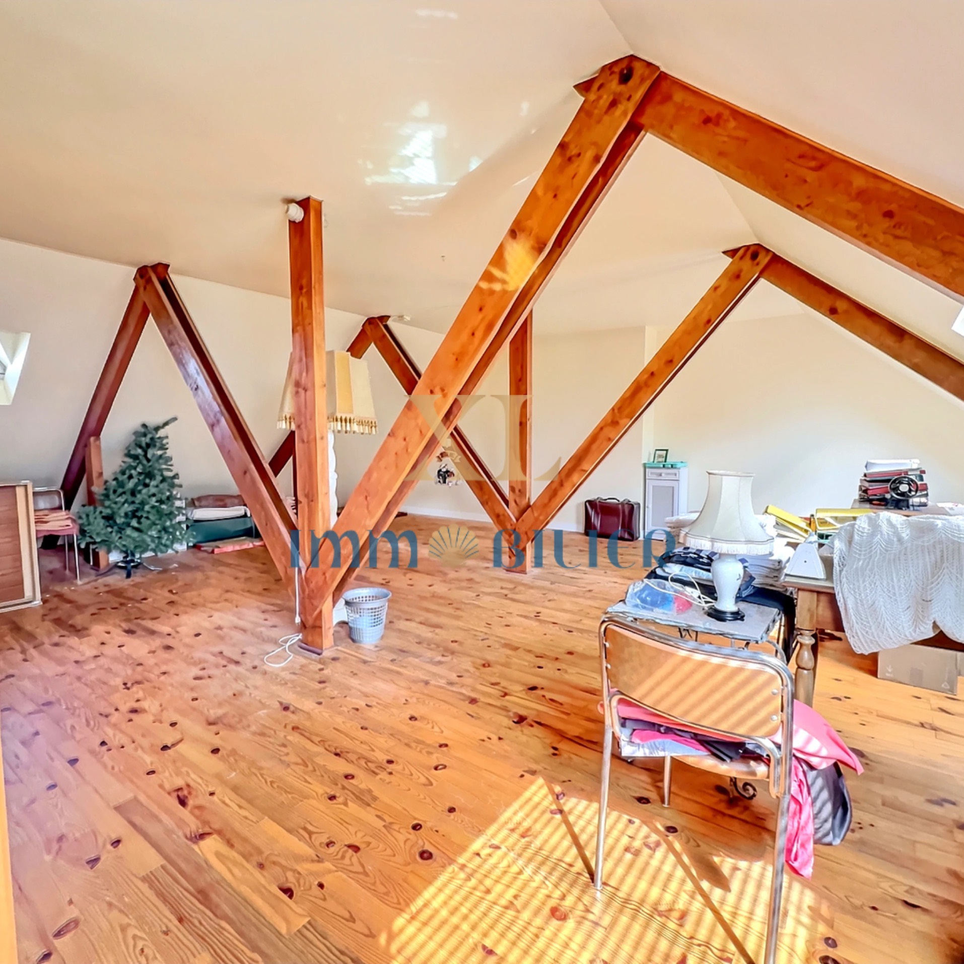 Au 1er étage sur dalle, nous retrouvons également 2 belles chambres, une salle d'eau, un WC et un salon/séjour avec cuisine ouverte aménagée et équipée.