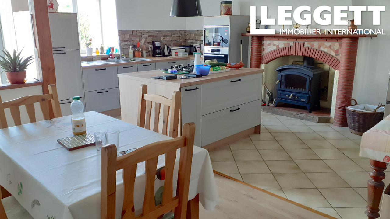 Elle comprend, au RDC, une entrée séparée, un coin buanderie fonctionnel, une salle de bains familiale avec douche, baignoire et WC, un séjour cosy d'environ 30 m2 avec poêle à granulés neuf et enfin une grande cuisine tout équipée refaite en 2024 avec coin repas d'environ 30 m2 avec poêle à bois neuf. Etage : Un premier escalier situé dans le hall d'entrée mène à une chambre mansardée avec un mur en pierre. Cette partie de la maison pourrait constituer un studio indépendant.