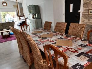 Centre-ville de Pont-Croix, au calme, Belle Maison de ville rénovée offrant de beaux volumes comprenant au rdc grand hall d'entrée, grande pièce à vivre avec coin cuisine aménagée ouverte sur séjour / salon (poêle à bois) donnant sur une grande Terrasse semi couverte, arborée, mezzanine, wc séparé, salle de bains avec wc, atelier, chaufferie. Au 1er étage 2 chambres, wc. Tout à l'égout
