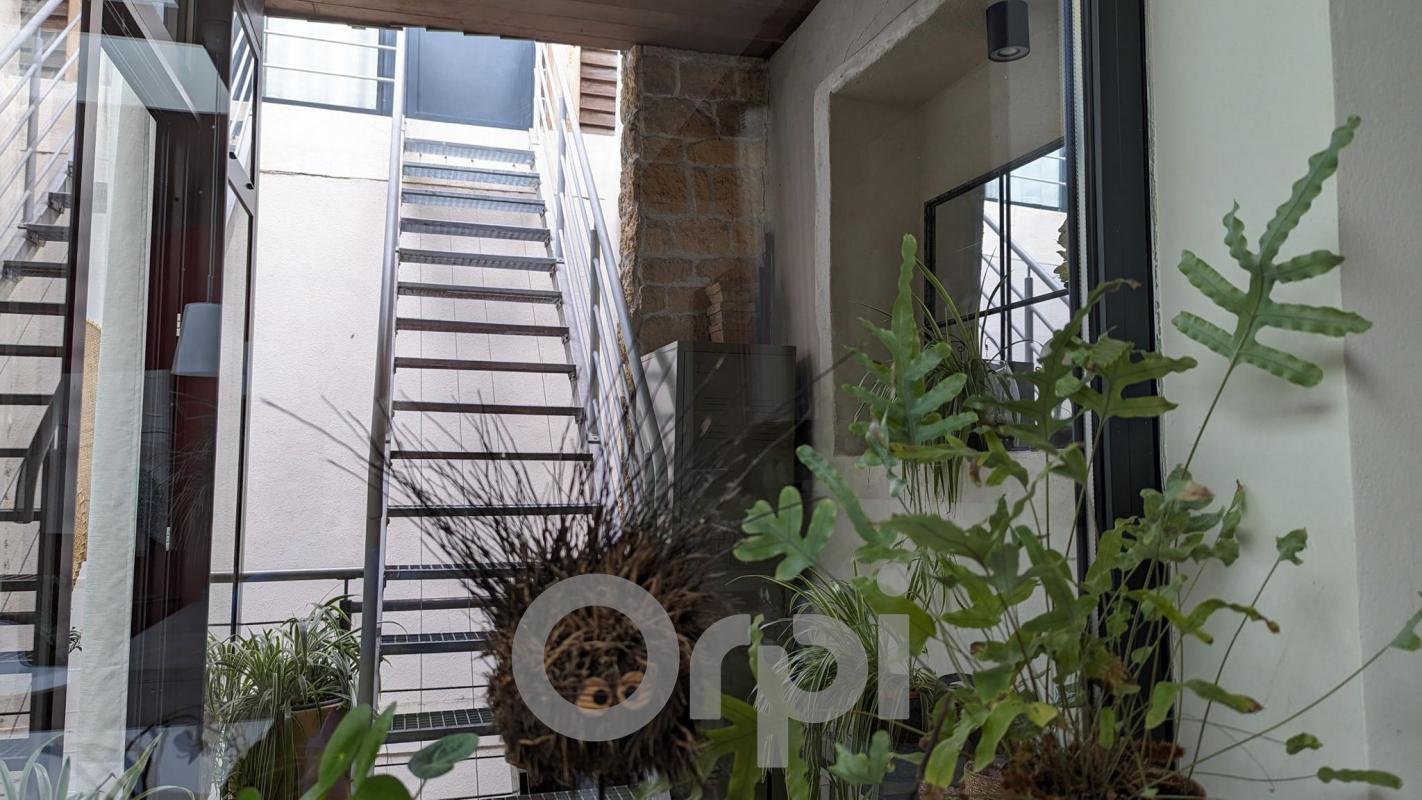 Derrière une façade empreinte d'histoire, ce bien atypique déploie ses volumes sur deux niveaux.