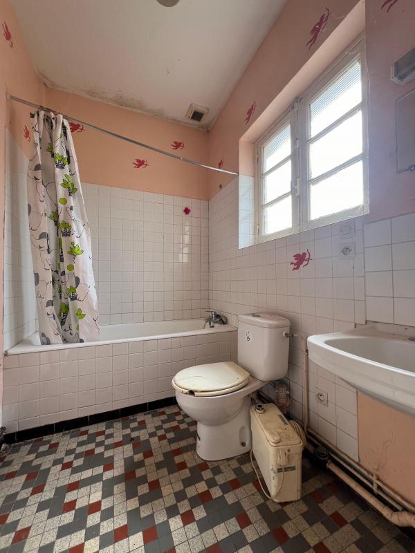 Belle maison à rénover en plein centre bourg d'une surface d'environ 115m², comprenant en rez de chaussée, un salon-séjour, coin cuisine, un WC. A l'étage, 3 chambres et une salle de bains avec un WC.