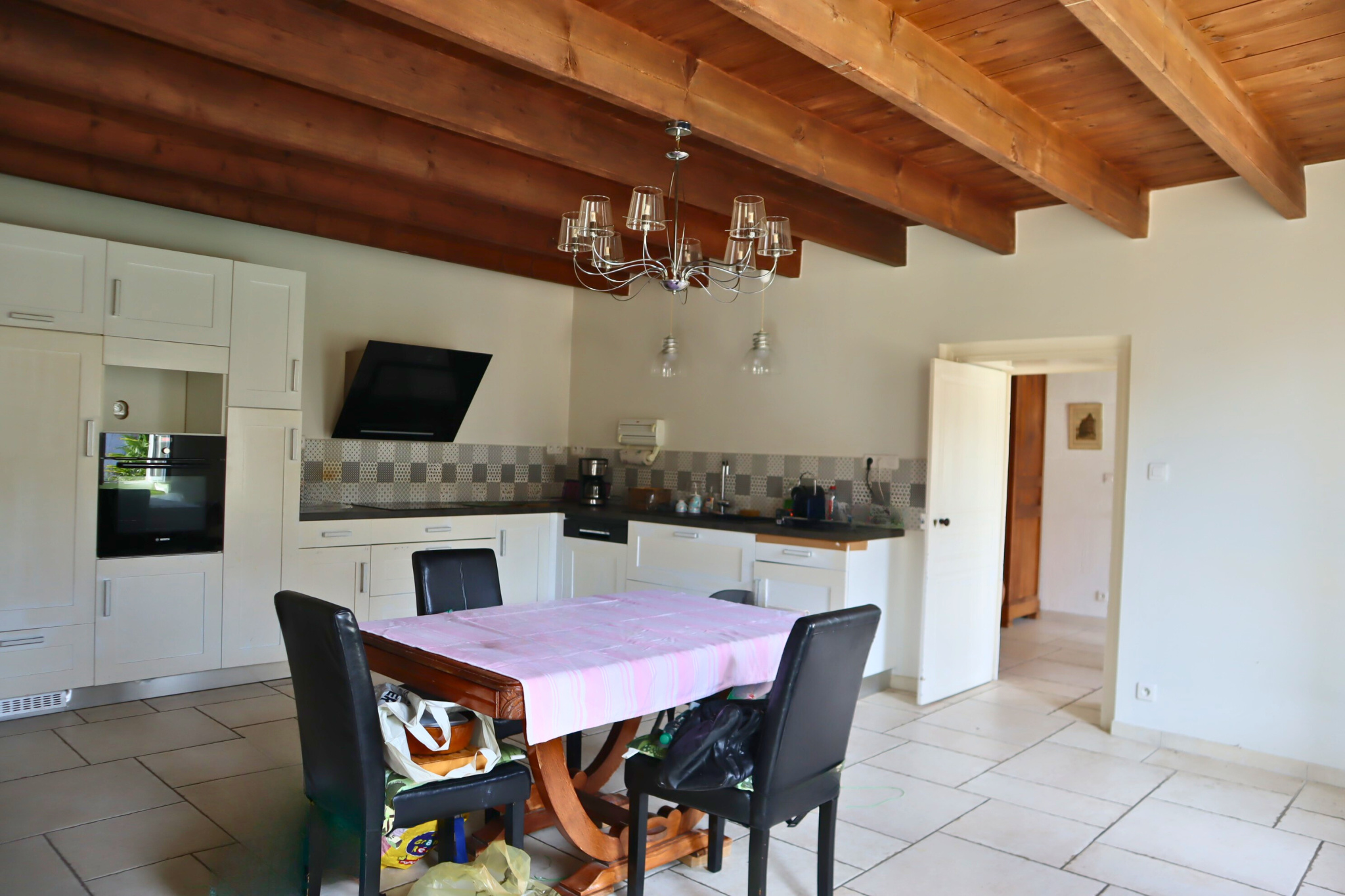 Dès l'entrée, vous serez conquis par les 15,40 m2 d'un hall d'accueil qui dessert harmonieusement les pièces de vie. Le salon de 34,36 m2, avec son parquet chaleureux, invite à la détente et aux moments conviviaux. La cuisine spacieuse de 31,15 m2 constitue le véritable coeur de la maison : entièrement aménagée avec des éléments blancs intemporels, elle dispose d'équipements modernes (hotte, plaque induction trois feux, lave-vaisselle) tout en conservant le charme d'antan grâce à sa cheminée en pierre authentique.