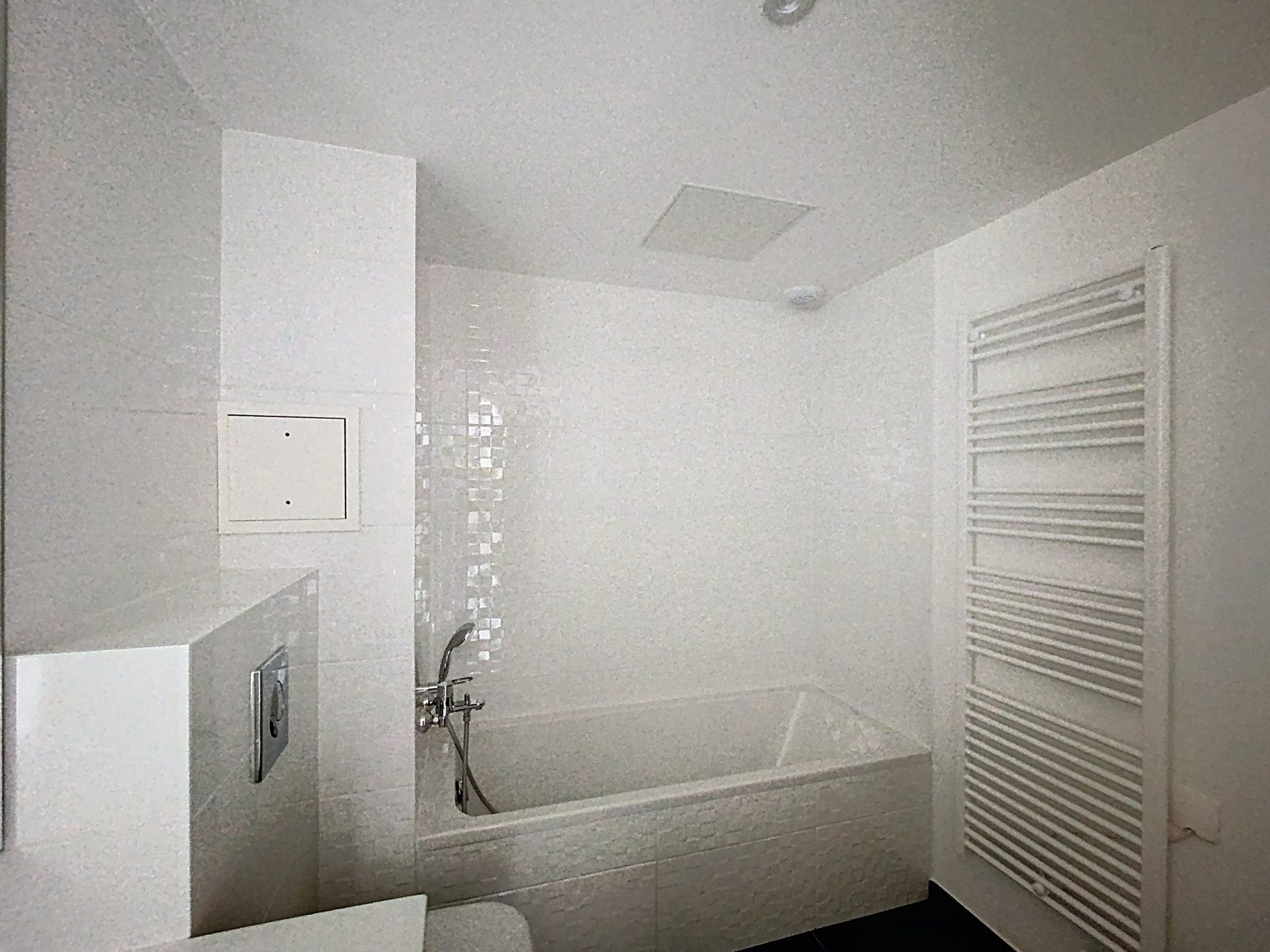 ? Salle de bain équipée avec baignoire, meuble vasque et sèche serviette,